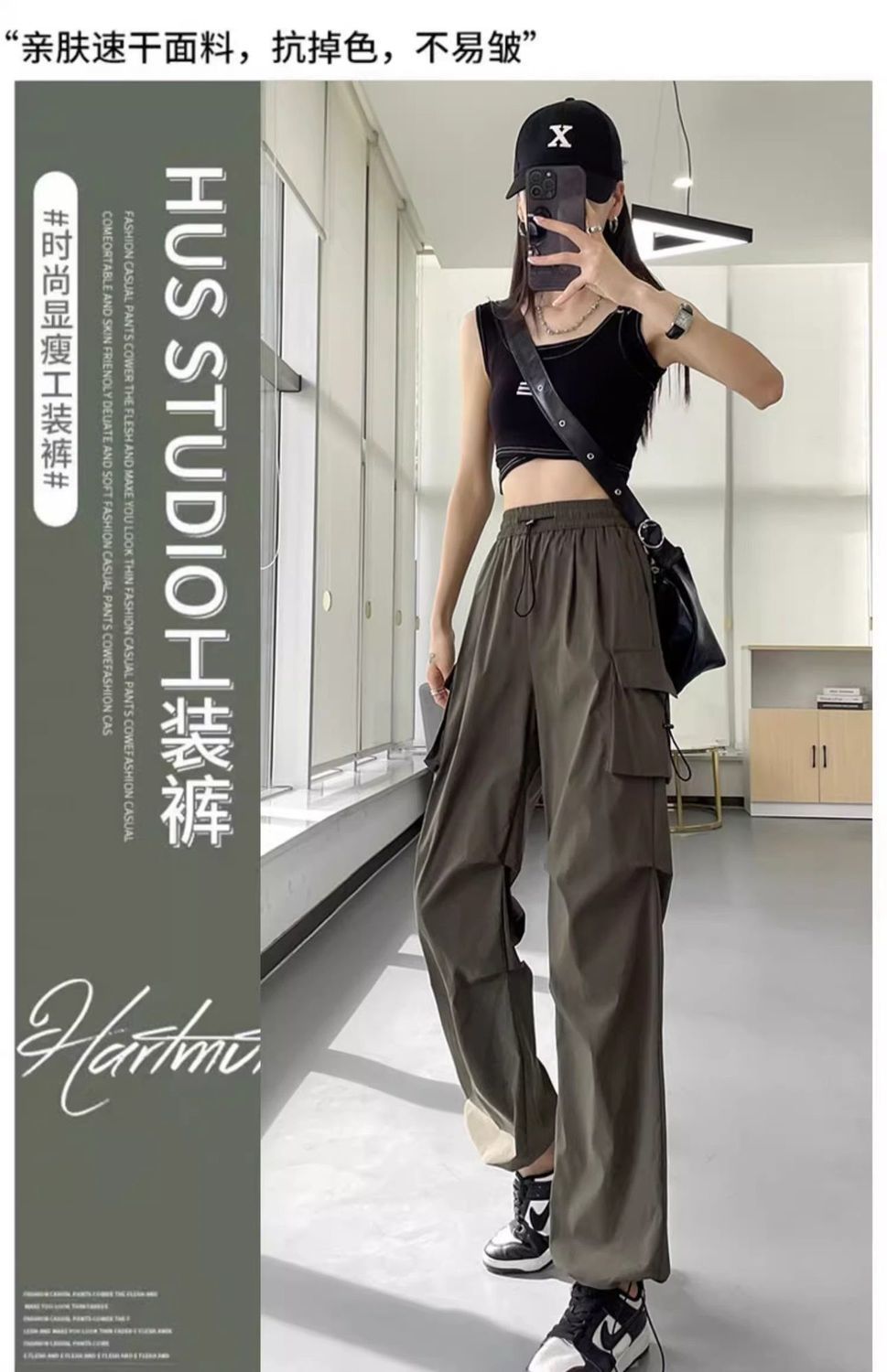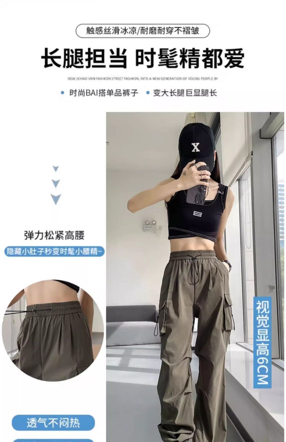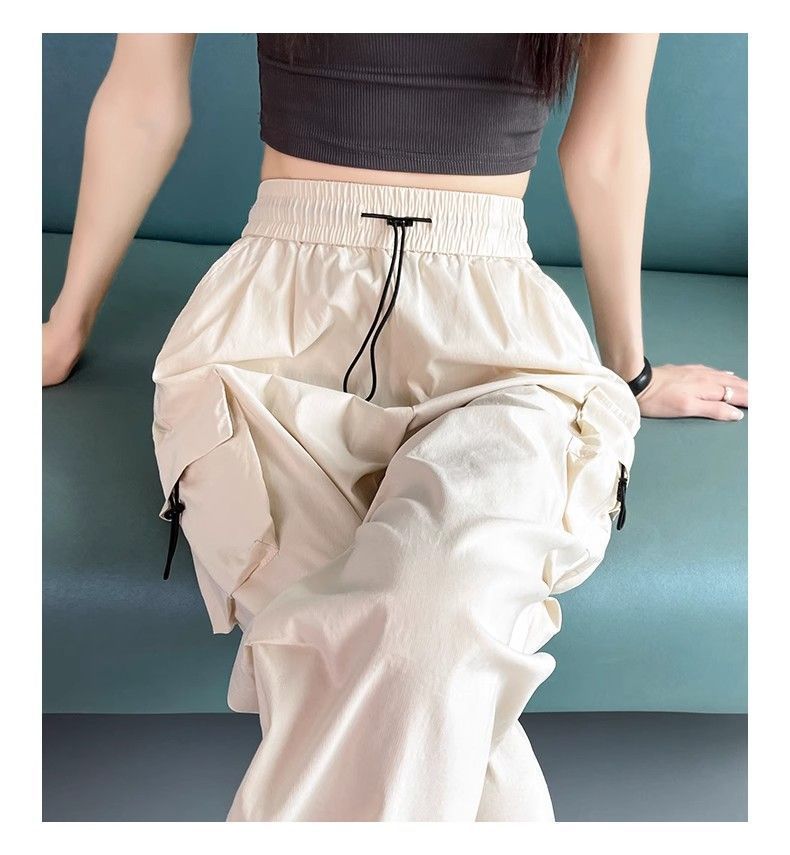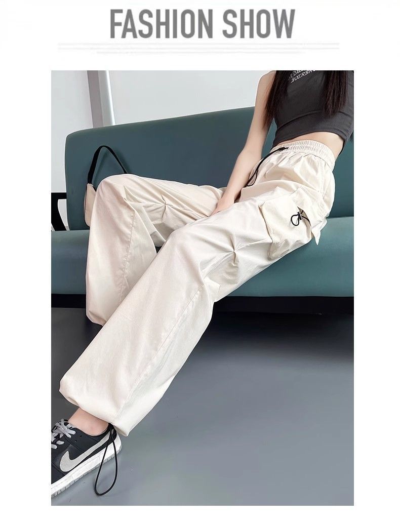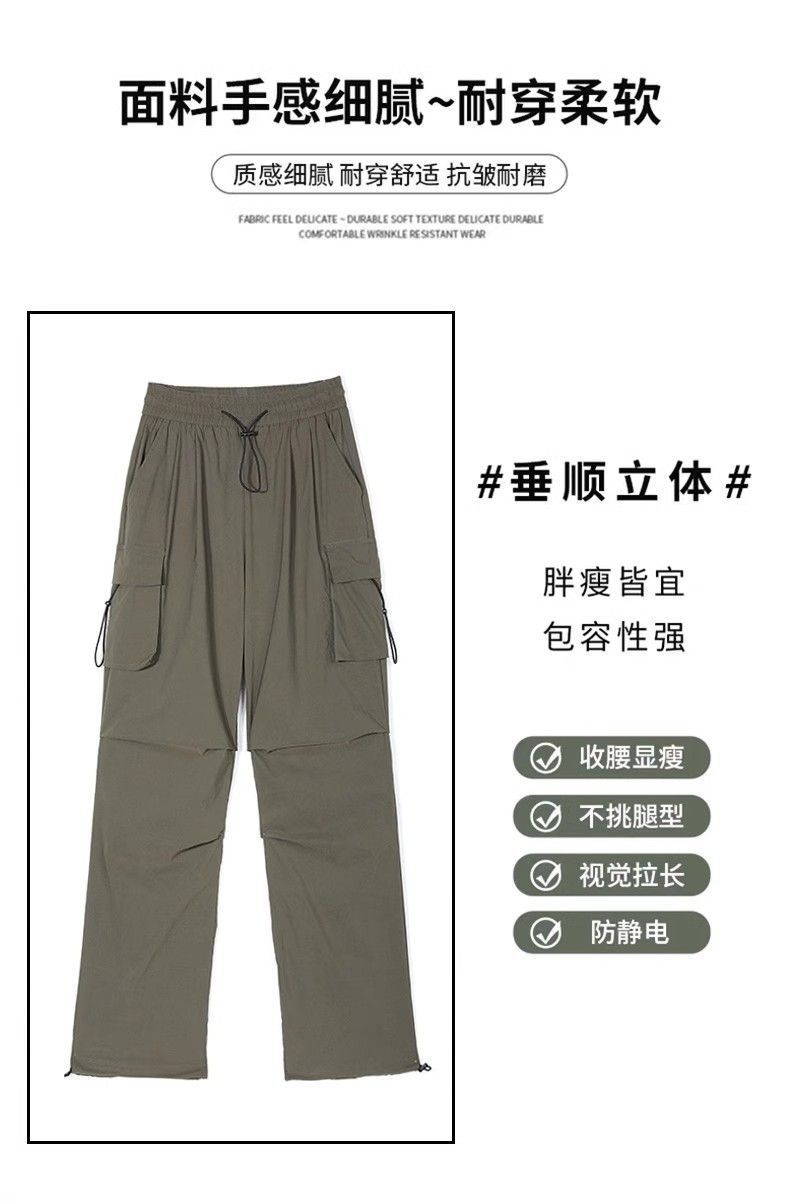 여성용 미국 가을 인기 작업복, 그레이 하이웨이스트 캐주얼 충전 바지, 작은 사이즈의 속건성 패션 스포츠 바지스토어 가기
