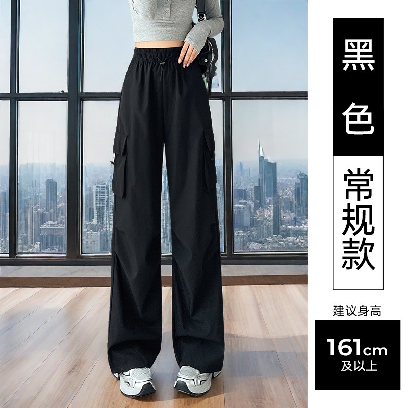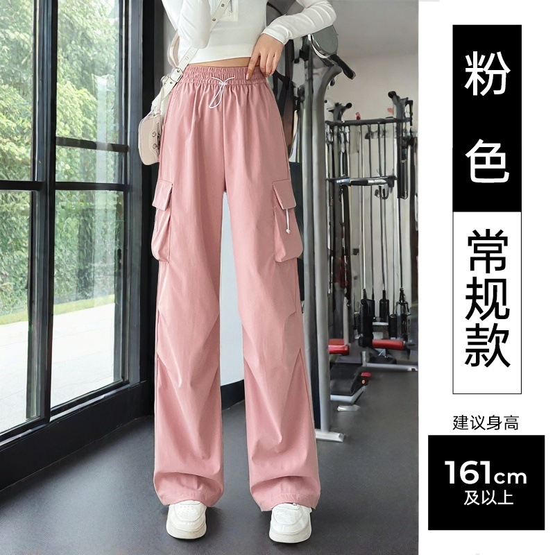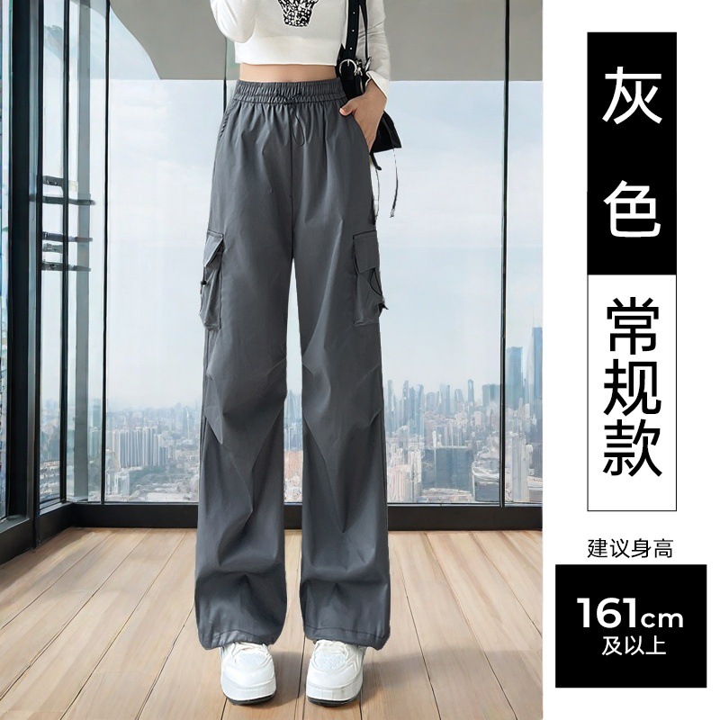 여성용 미국 가을 인기 작업복, 그레이 하이웨이스트 캐주얼 충전 바지, 작은 사이즈의 속건성 패션 스포츠 바지