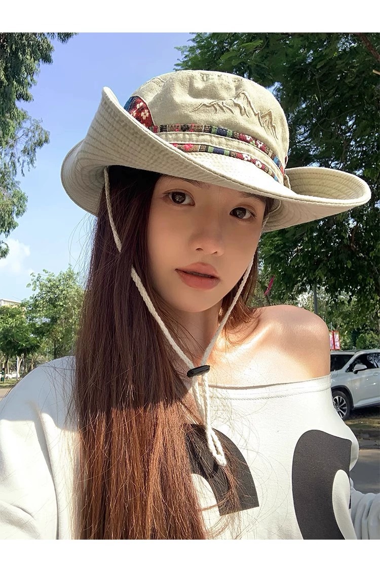서양 여행 카우보이 모자 여성의 여름 야외 큰 브림 어부 모자 쇼페이스 작은 태양 보호 모자 햇살 등산 모자스토어 가기