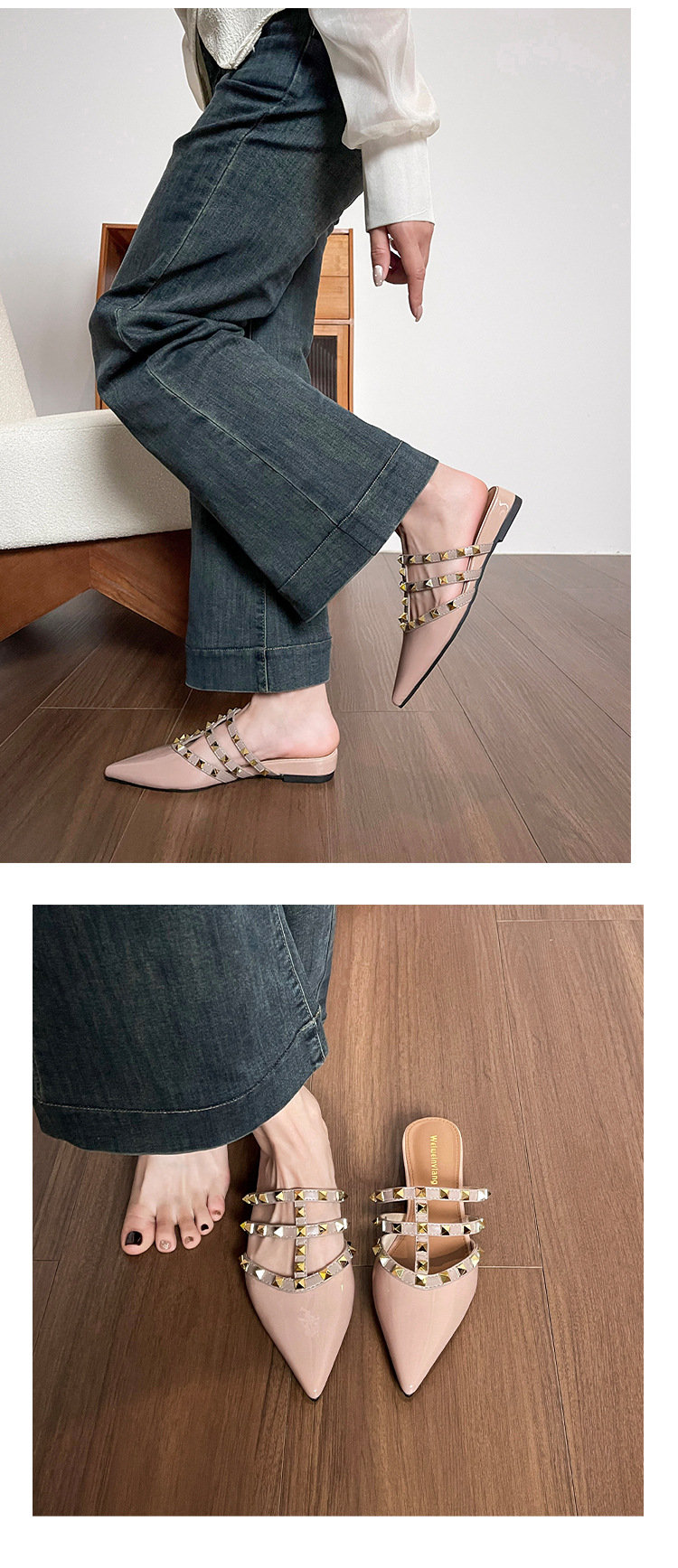 리벳 발가락 슬리퍼 여름 여성 아우터 2025 새로운 스타일 슬립 온 누드 컬러 세미 드래그 여성 플러스 사이즈 여성 신발