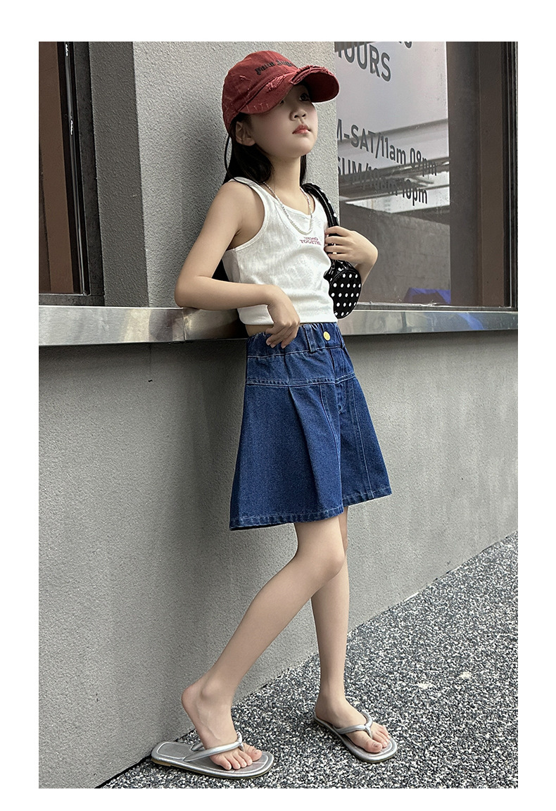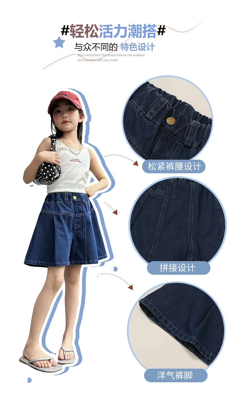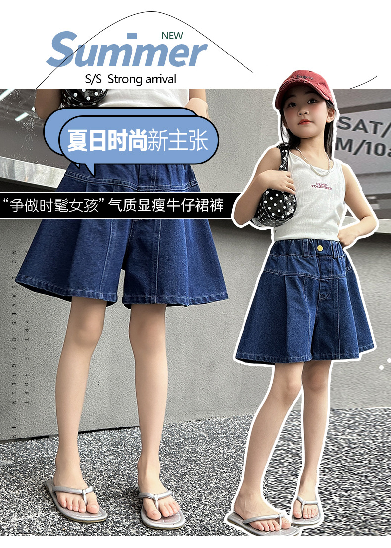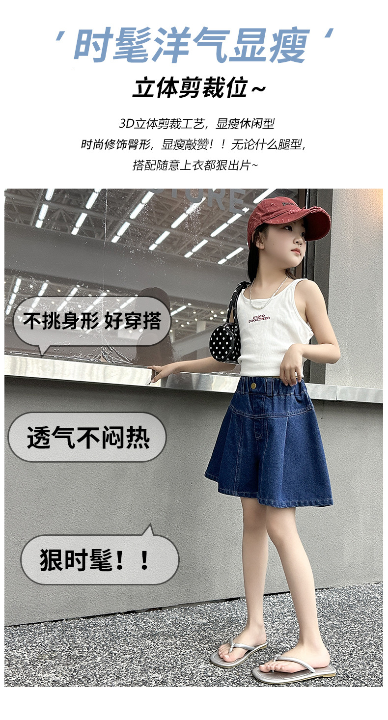 여아 여름 데님 치마바지, 새로운 대외 무역 아동복, 여름 옷, 중대형 아동용 다용도 데님 반바지, 트렌디한 아동용 핫팬츠스토어 가기