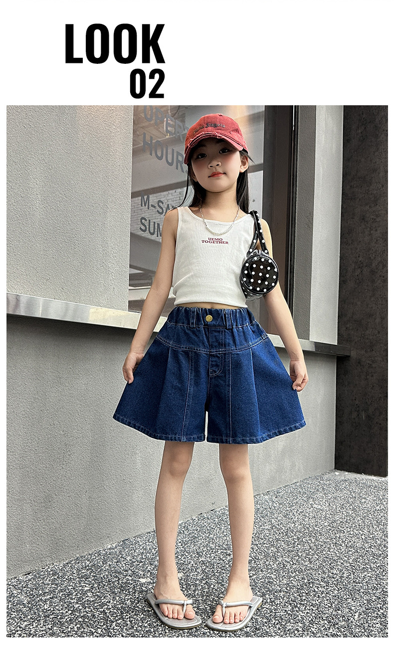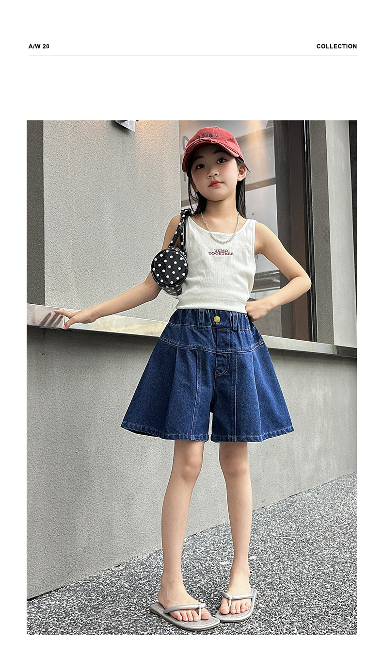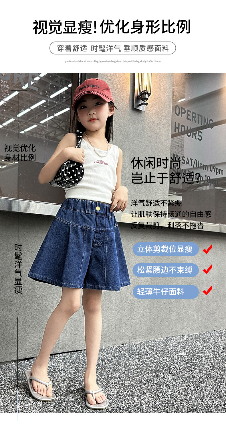 여아 여름 데님 치마바지, 새로운 대외 무역 아동복, 여름 옷, 중대형 아동용 다용도 데님 반바지, 트렌디한 아동용 핫팬츠스토어 가기