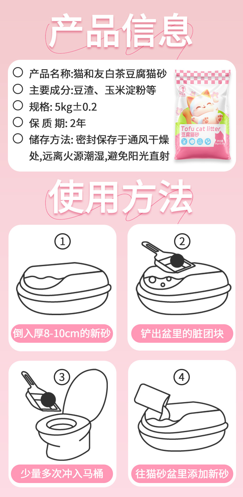 • 【백차맛】혼합 고양이 모래 2kg