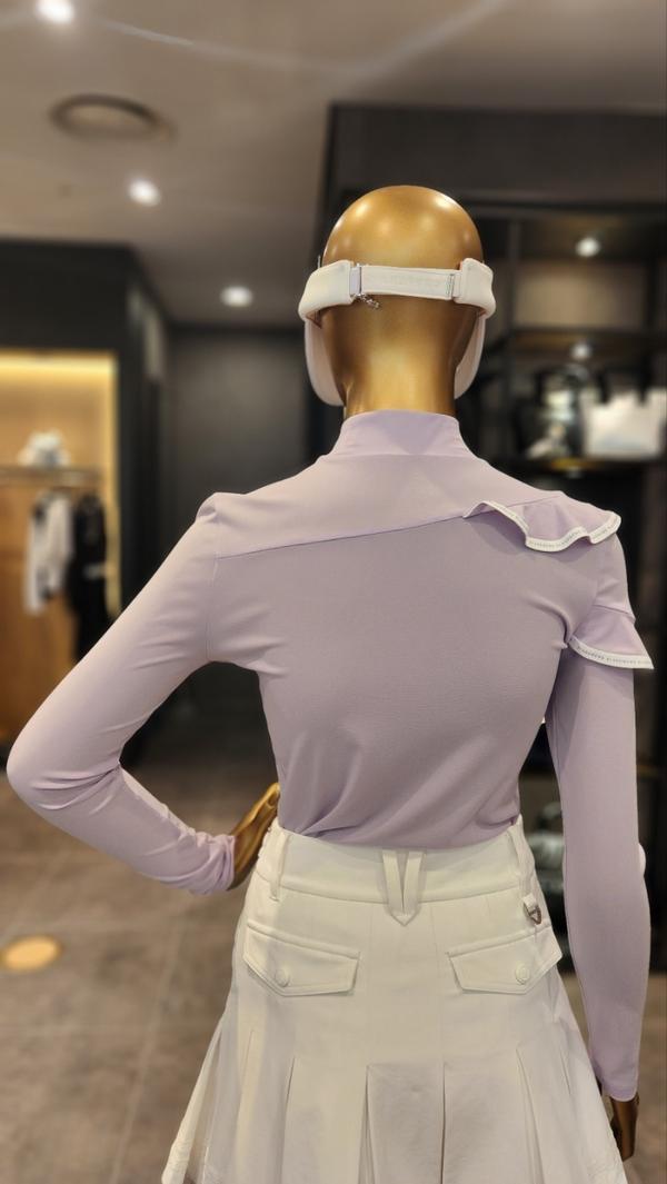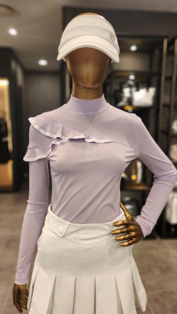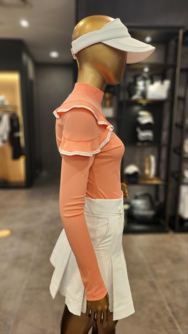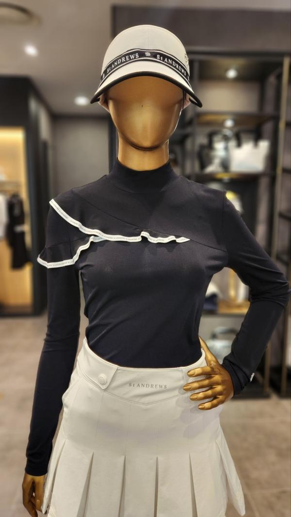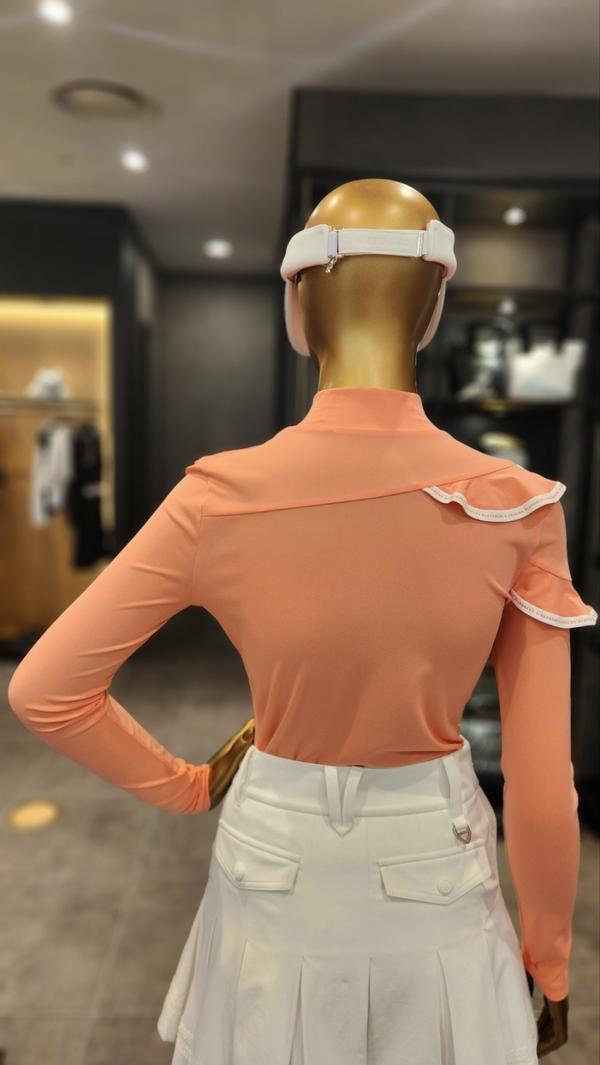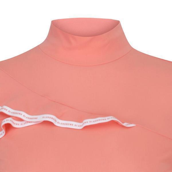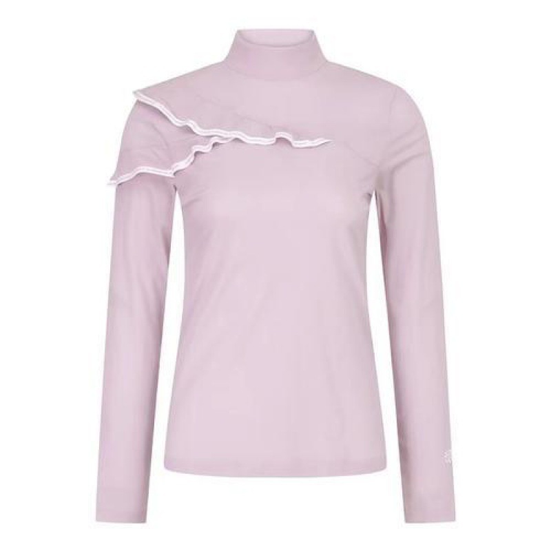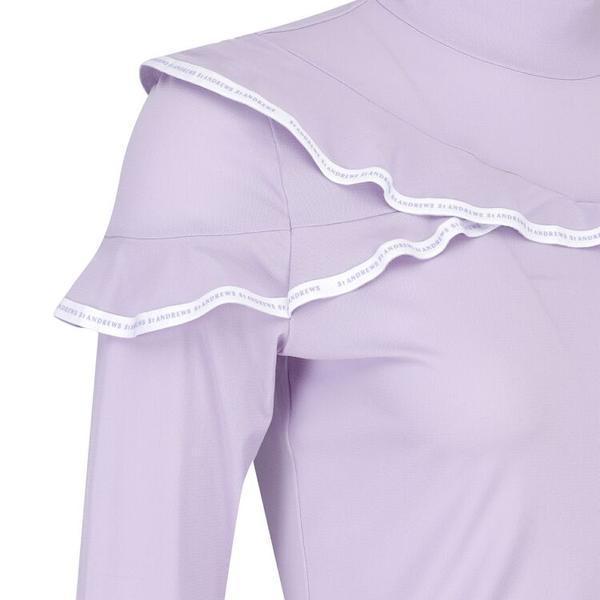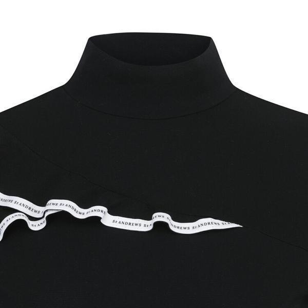 韩国新款原单高尔夫女装上衣golf女立领修身长袖花边淑女气质T恤