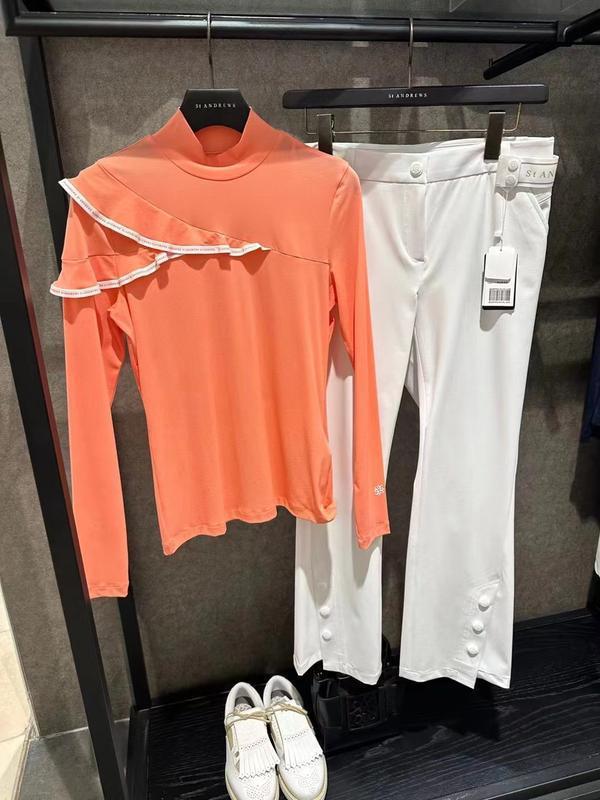 한국 새로운 오리지널 싱글 골프 여자 탑 골프 여자 탑 여자 수직 칼라 슬림 긴 소매 레이스 레이디 우아한 티셔츠스토어 가기