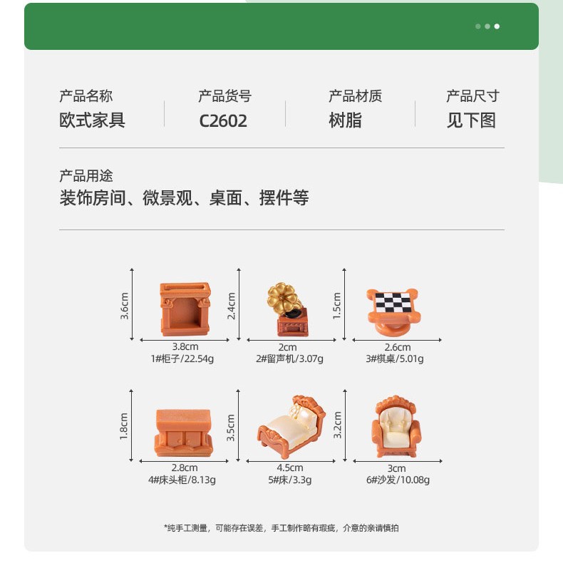 마이크로 풍경 간단한 창조적 인 유럽 가구 모델 인형 집 DIY 장식 미니어처 수제 수지 작은 장식품