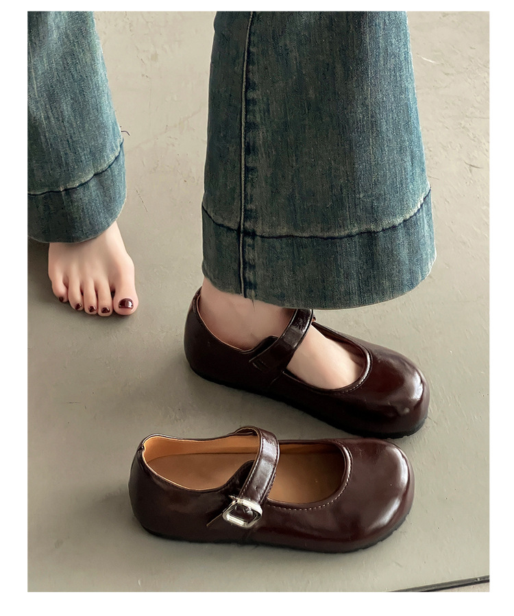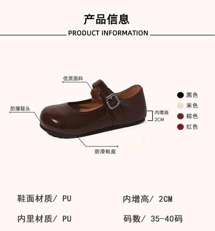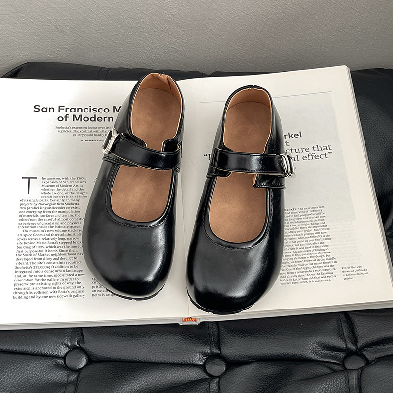 빈티지 라운드 발가락 귀여운 얕은 입 싱글 레이어 신발 여성 봄과 여름 2025 새로운 도착 프랑스 스타일 올 매치 영국 스타일의 작은 가죽 신발