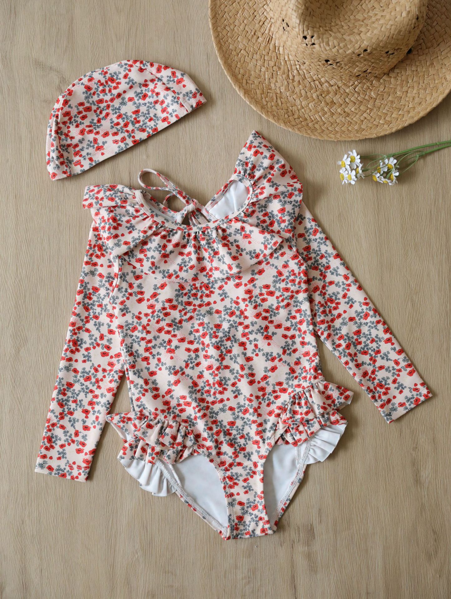 여아용 인스타 스타일 레이스 백리스 원피스 수영복 26년 여아용 긴팔 자외선 차단 수영복 공주풍 귀여운 수영복스토어 가기