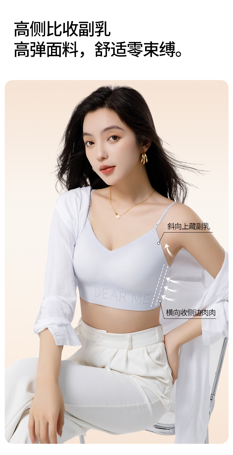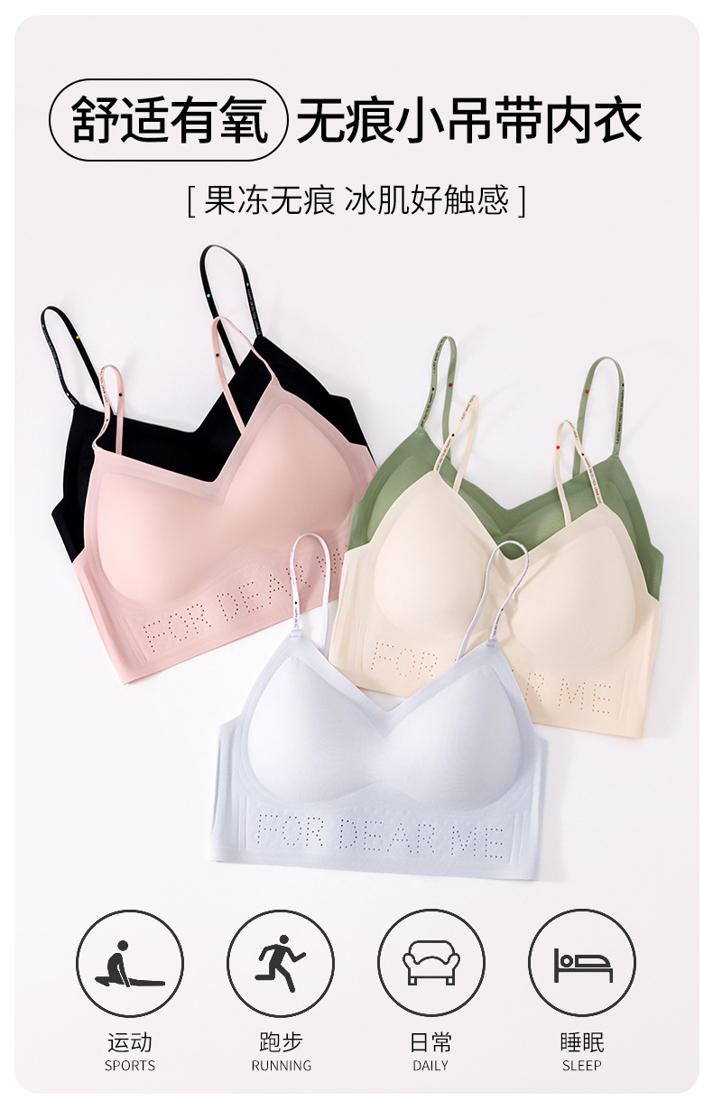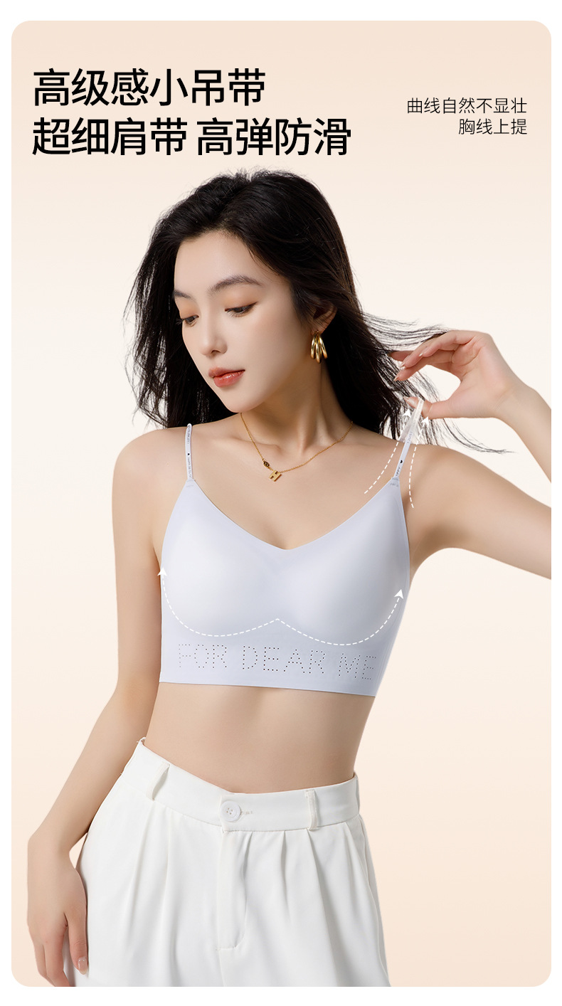 봄 여름 신제품 누드 무봉제 서스펜더 브라, 얼음처럼 통기성이 좋고 편안한 작은 가슴 푸쉬업 노와이어 여성용 브라