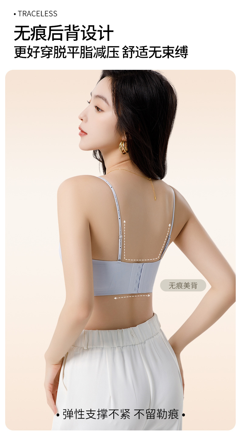 봄 여름 신제품 누드 무봉제 서스펜더 브라, 얼음처럼 통기성이 좋고 편안한 작은 가슴 푸쉬업 노와이어 여성용 브라스토어 가기