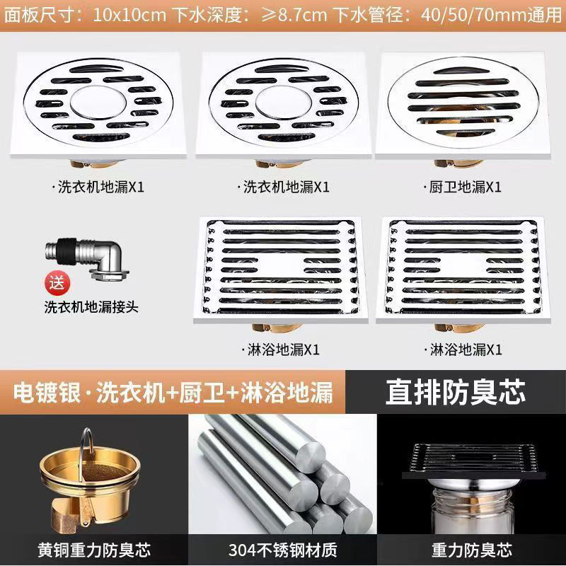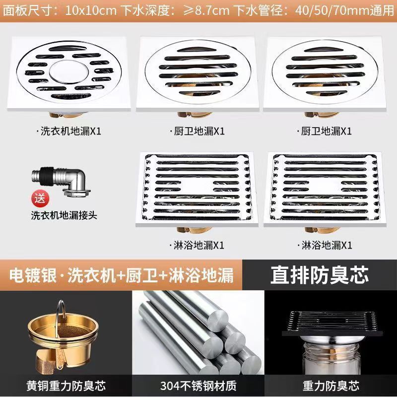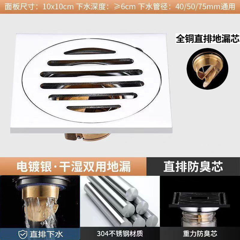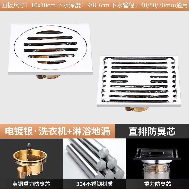 광저우 잠수함 스테인레스 스틸 바닥 배수구 욕실 욕실 배수구 탈취제 및 곤충 방지 세탁기 바닥 배수구 전체 구리 코어스토어 가기
