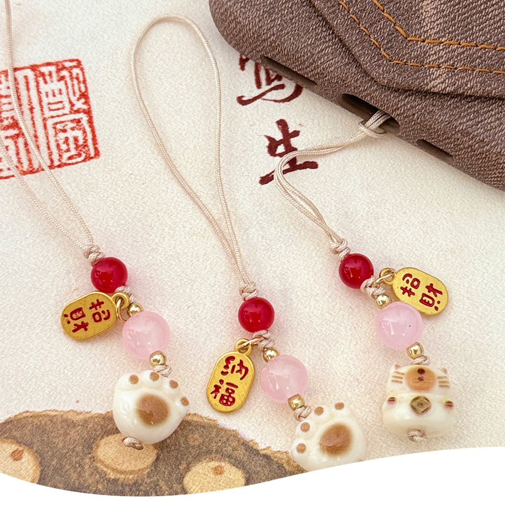 창의적인 중국 스타일 행운의 고양이 발톱 휴대 전화 체인 끈 펜던트 귀엽고 절묘한 휴대 전화 케이스 키 체인 커플 작은 펜던트스토어 가기