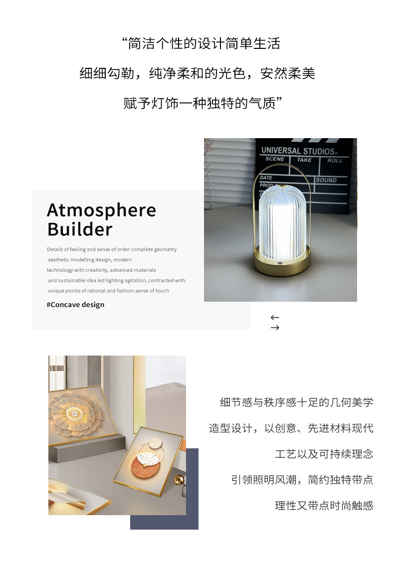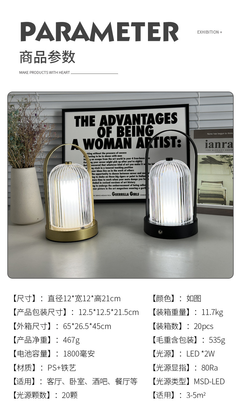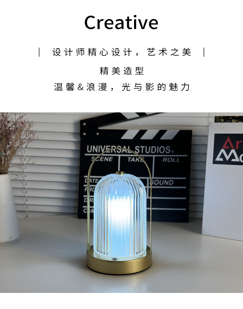 휴대용 야간 조명 침실 침대 옆 테이블 램프 충전식 LED 램프 고급 복고풍 발코니 야외 테이블 램프 클리어 바