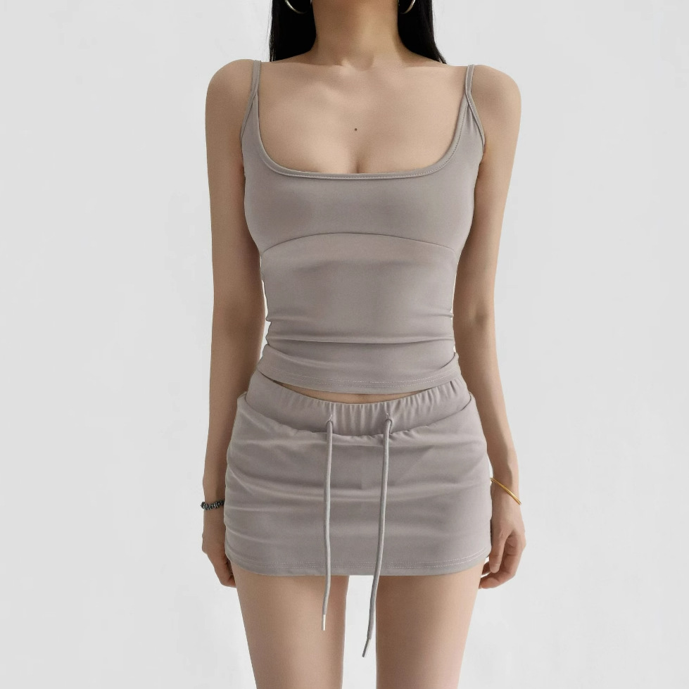 스파이스 걸스 캐주얼 세트 여성용 2025 여름 솔리드 컬러 U-넥 작은 카미솔 조끼 낮은 허리 엉덩이 미끄럼 방지 스커트