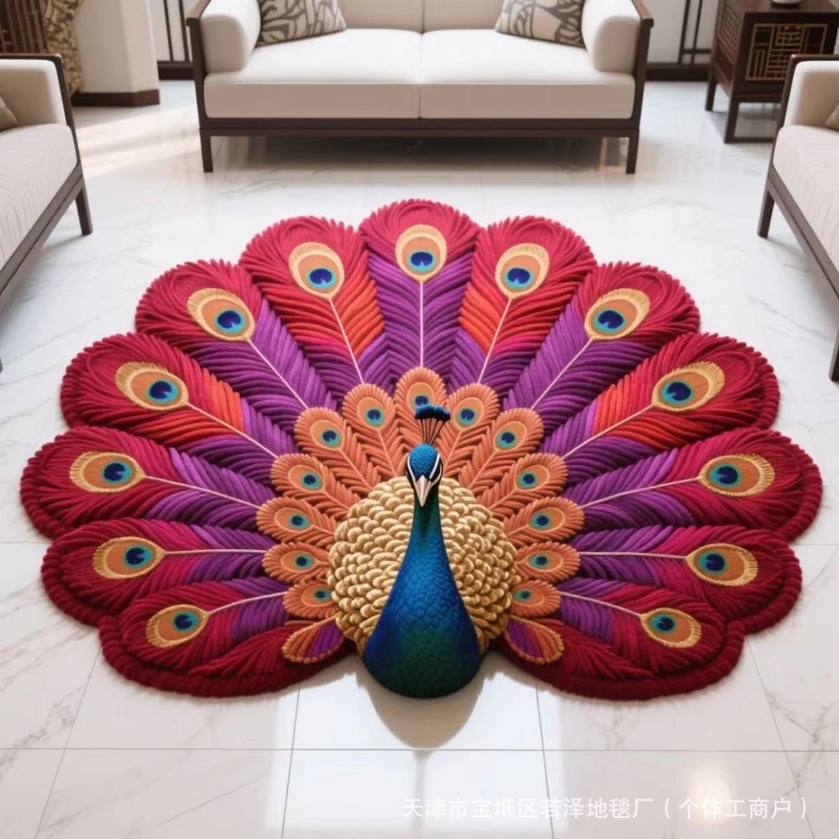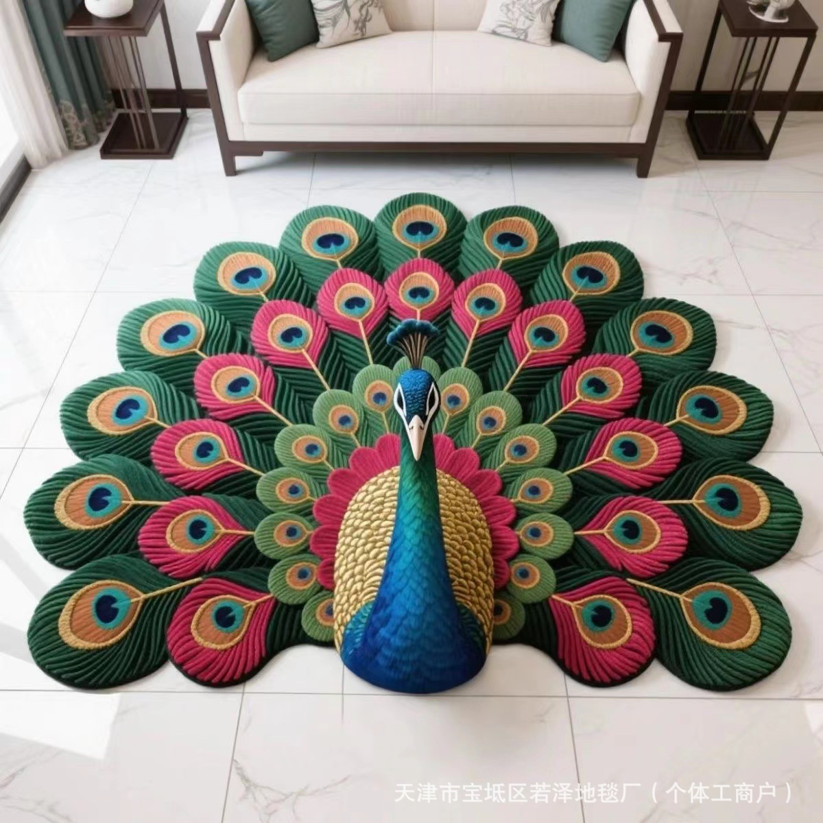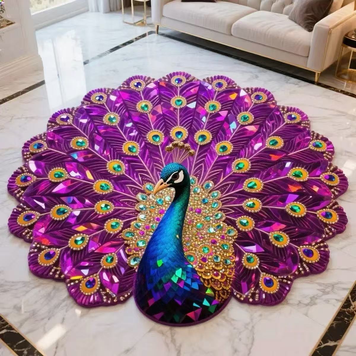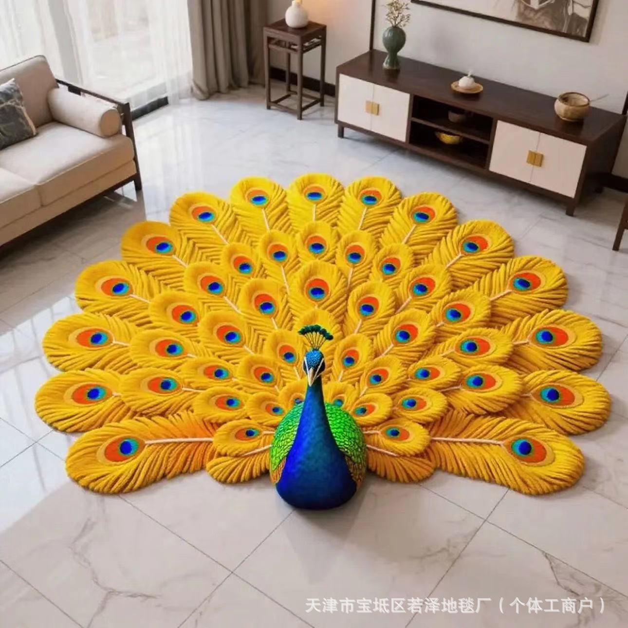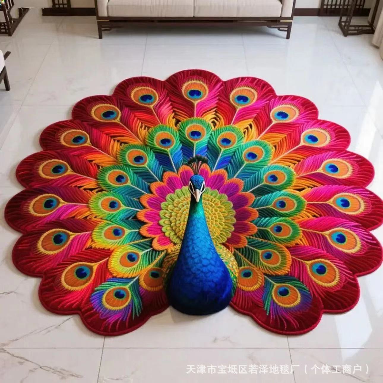 핫세일 공작새 크리스탈 벨벳 거실용 바닥 매트 거실용 3D 꽃무늬 카펫 원형 가정용 신형 특수형 매트스토어 가기
