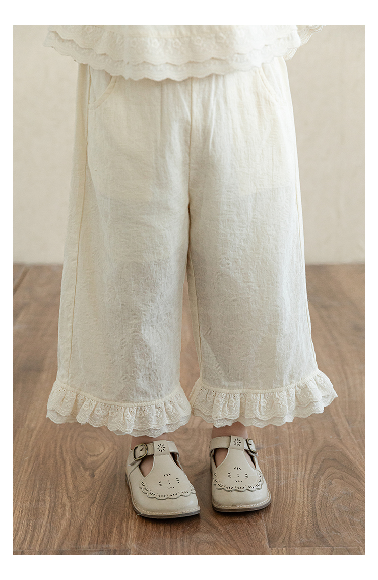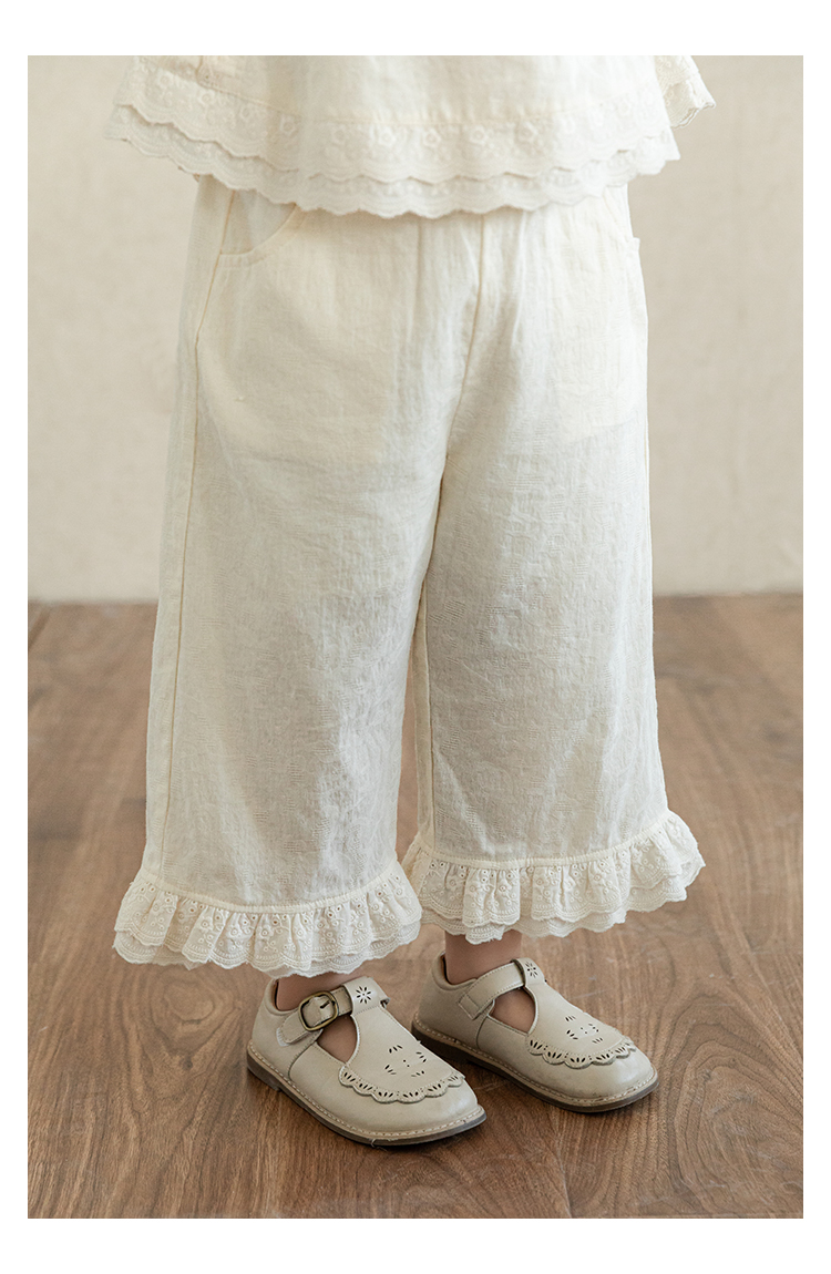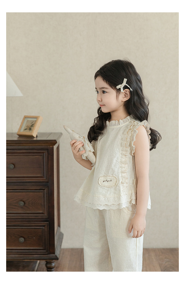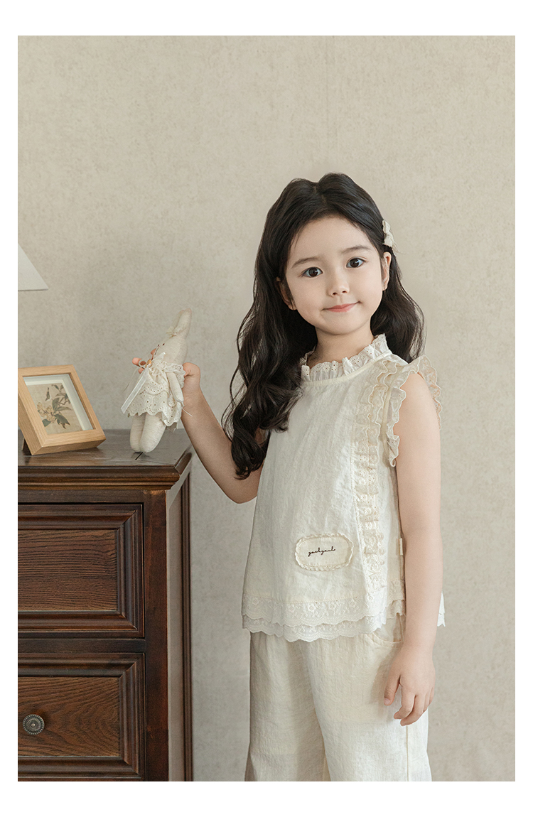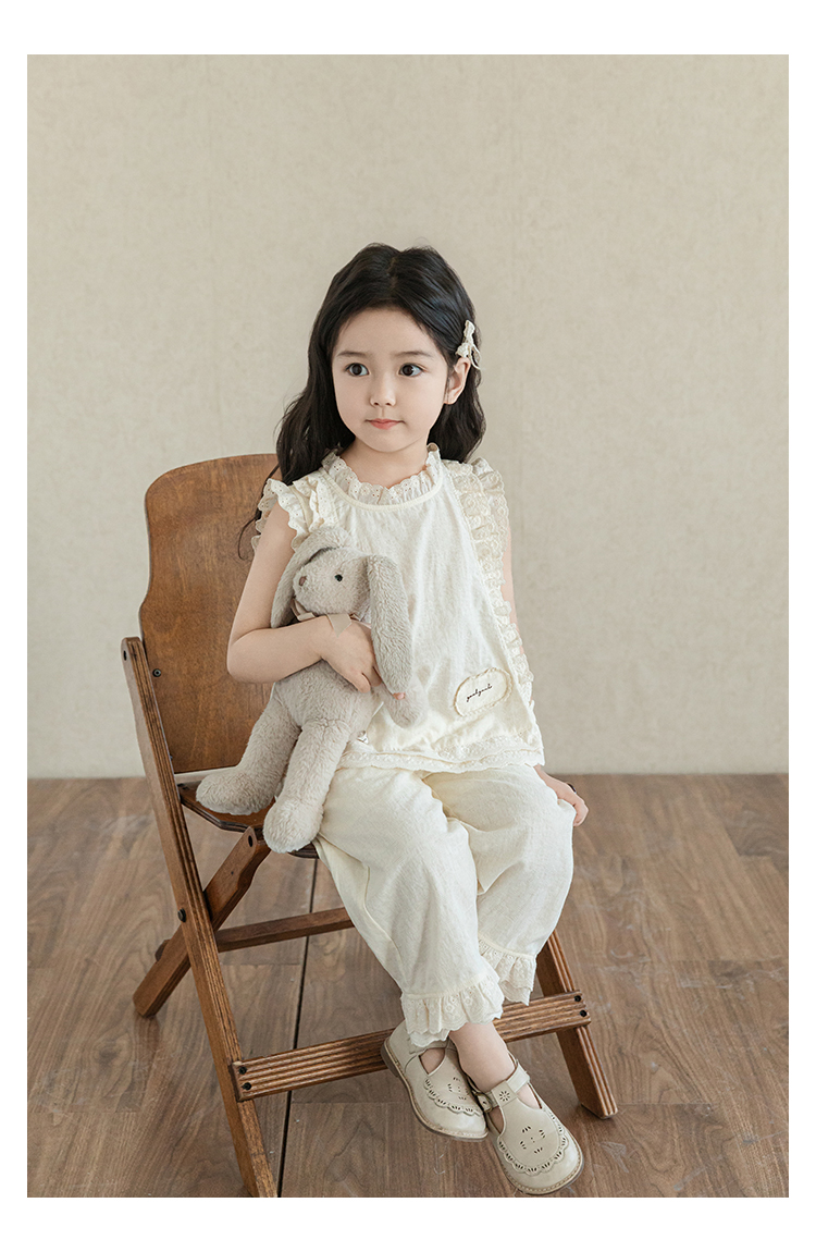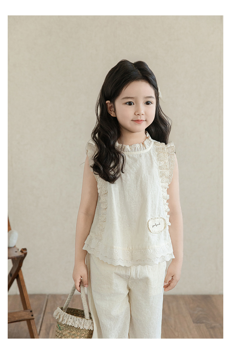 Wulibuyi 소녀 문학 정장 2025 여름 어린이 귀여운 중공 자수 꽃 조끼 느슨한 스트레이트 바지