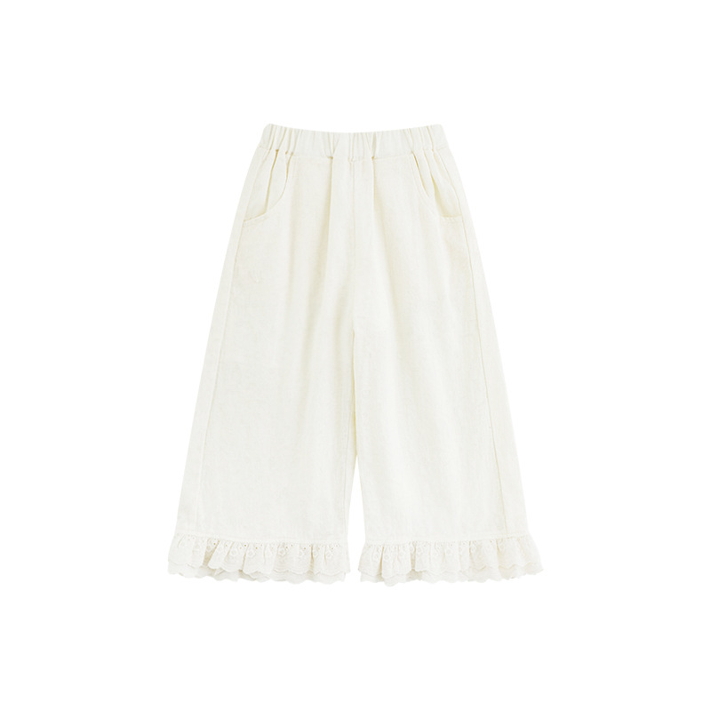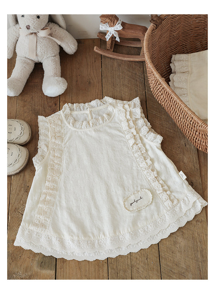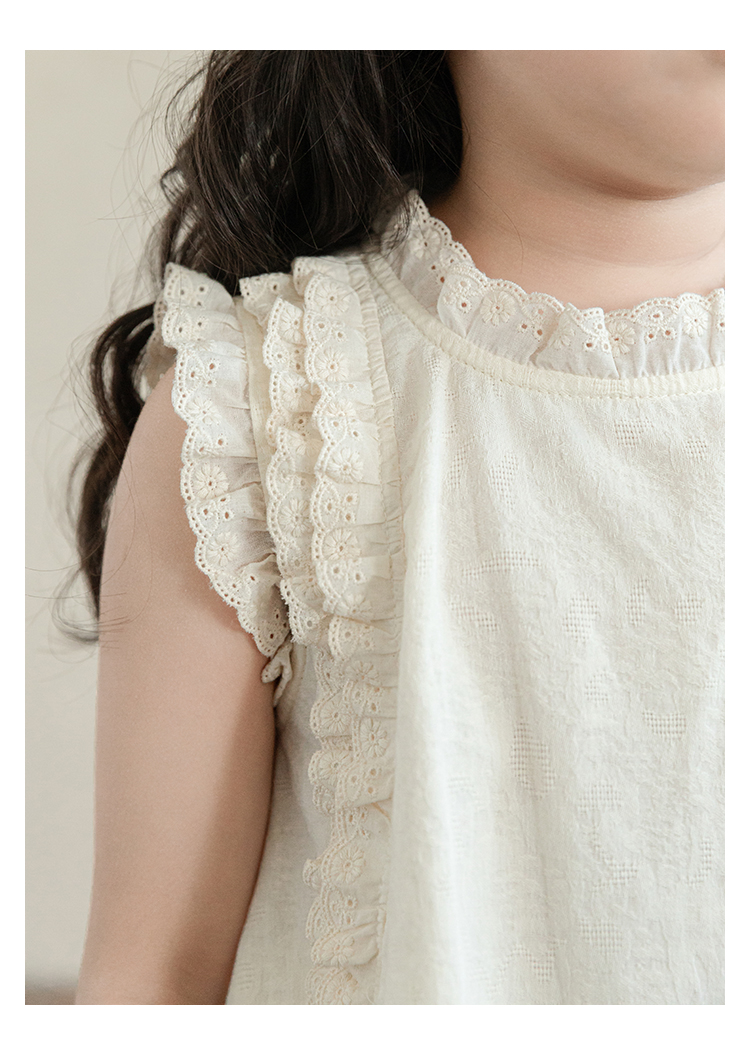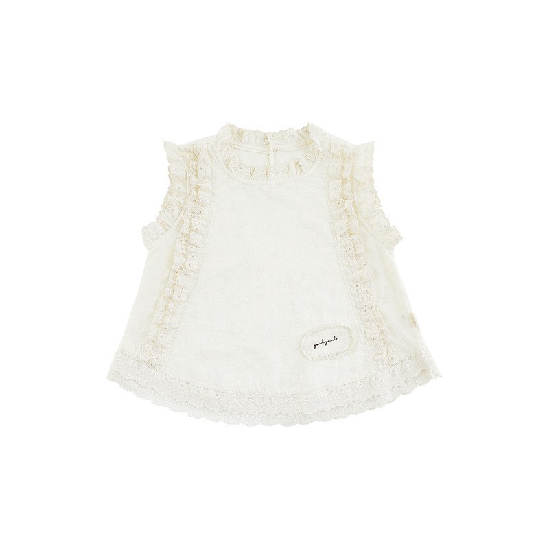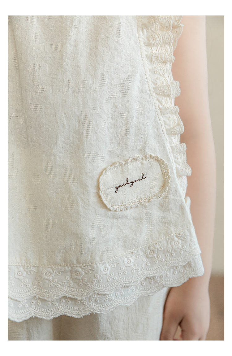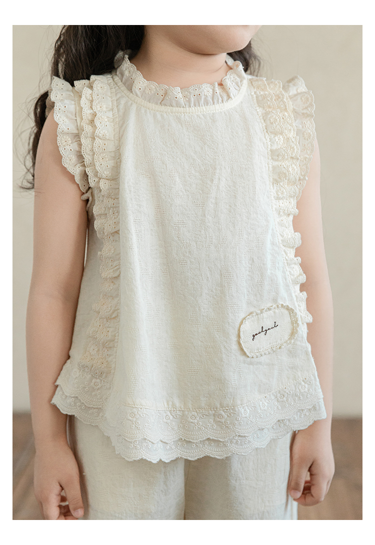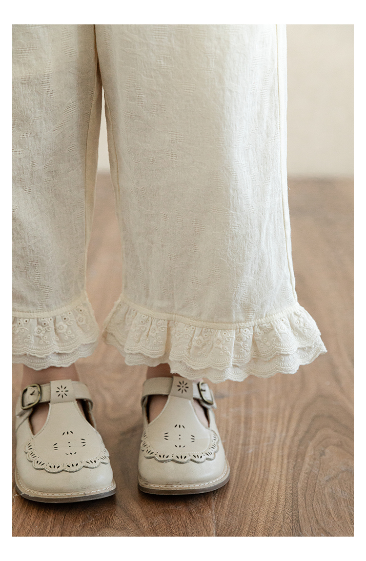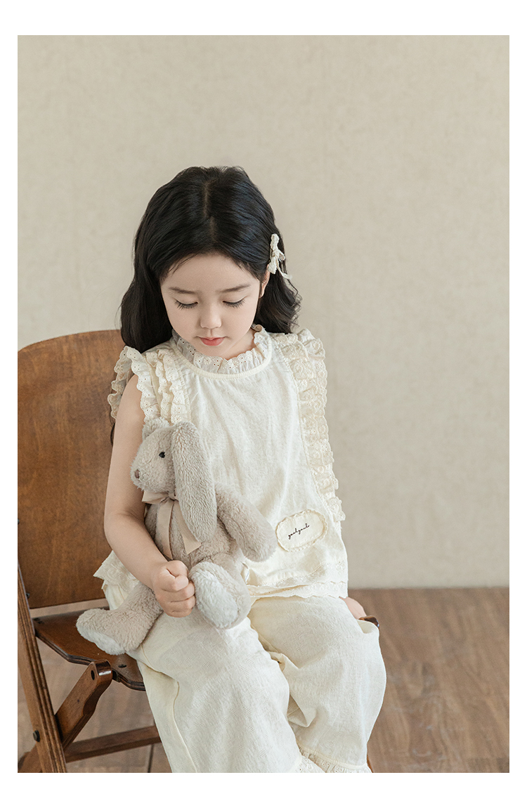 Wulibuyi 소녀 문학 정장 2025 여름 어린이 귀여운 중공 자수 꽃 조끼 느슨한 스트레이트 바지