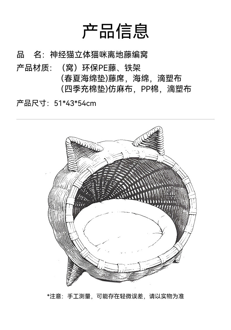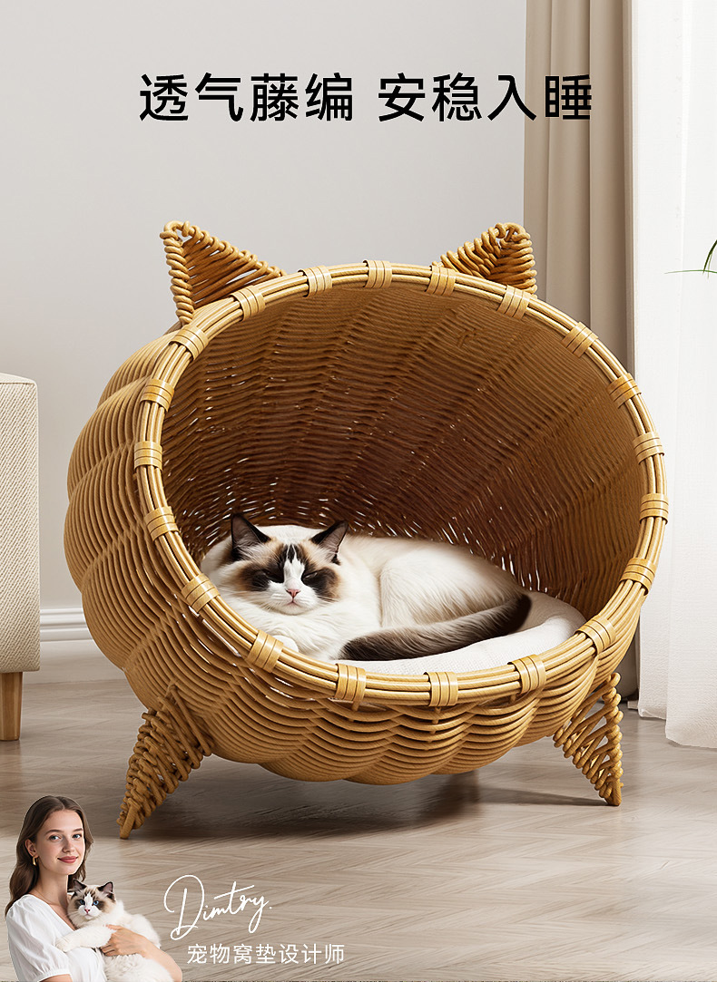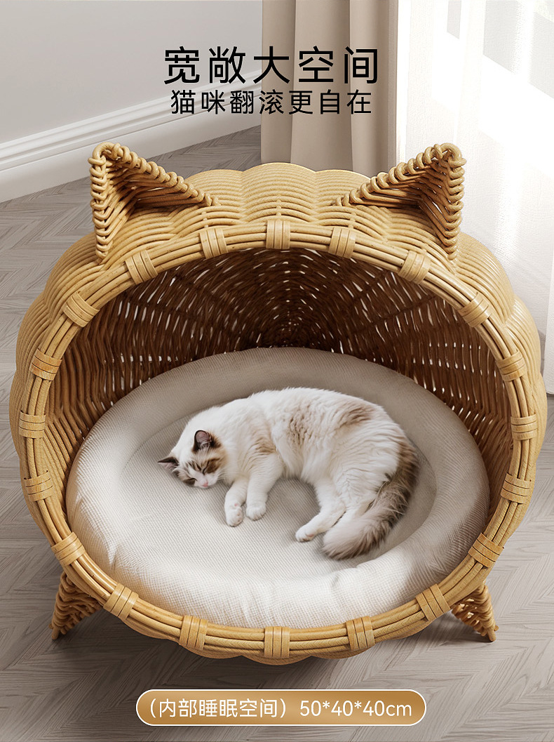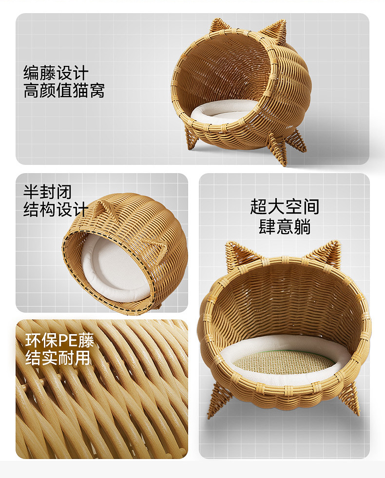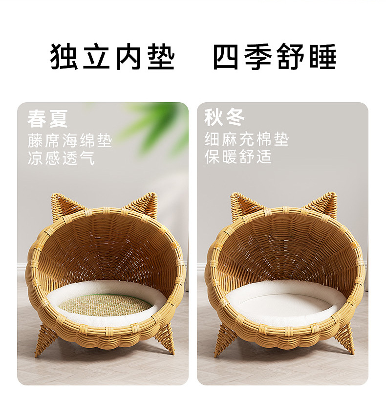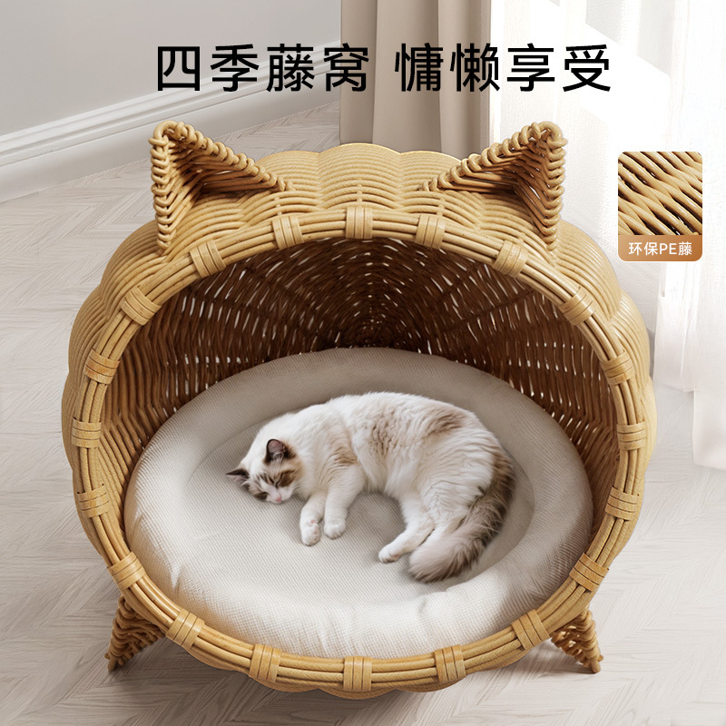 고양이를 위한 등나무로 짠 고양이 둥지, 올 시즌 사용 가능한 지상 방습 반밀폐형 고양이 침대, 봄과 여름 등나무로 짠 매트 고양이 둥지, 애완동물 둥지스토어 가기