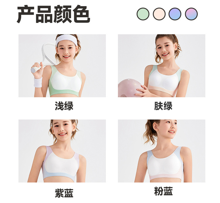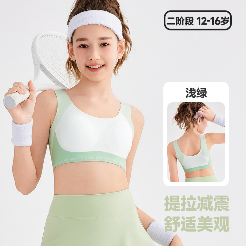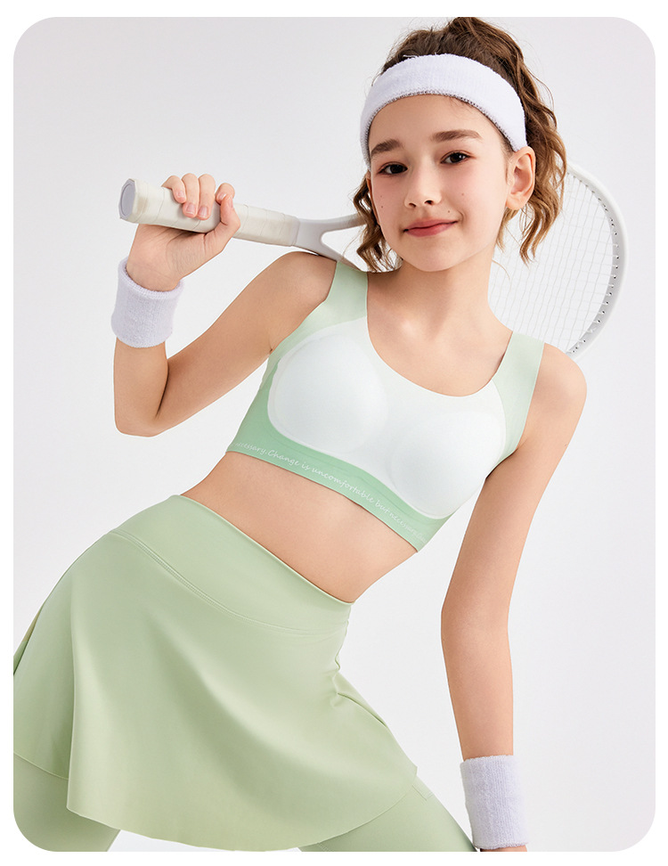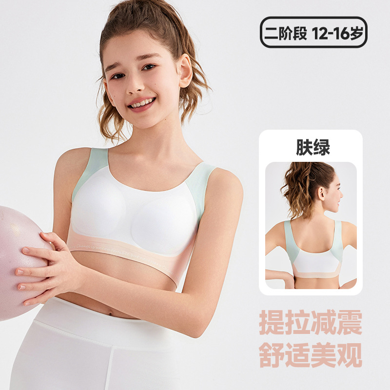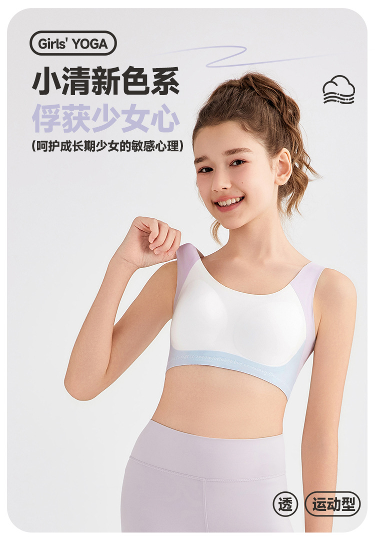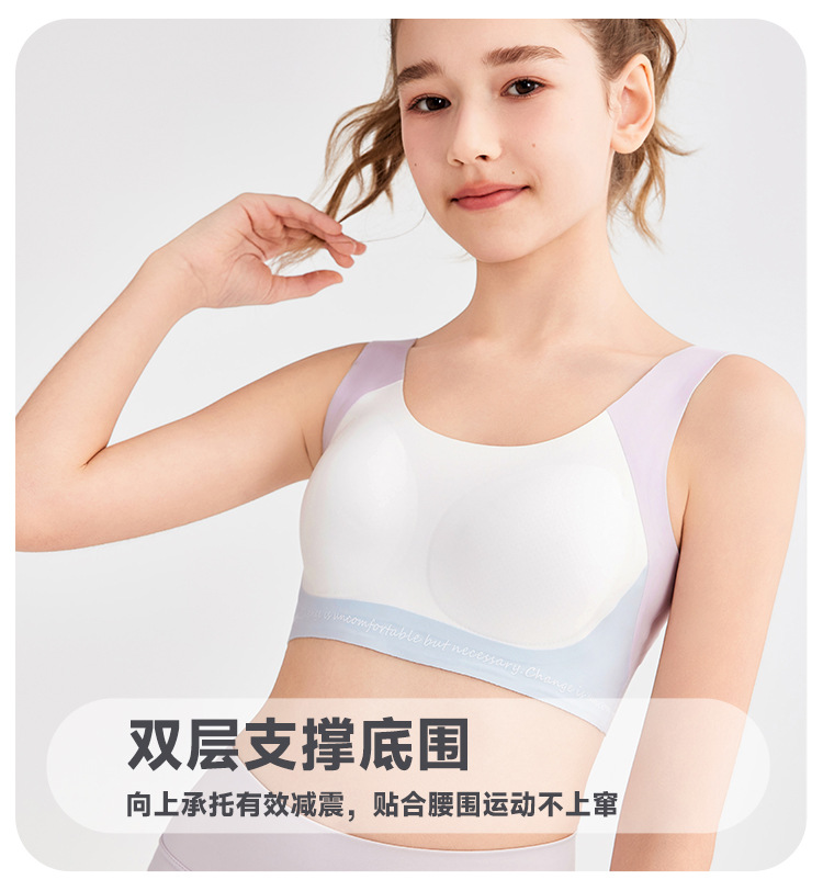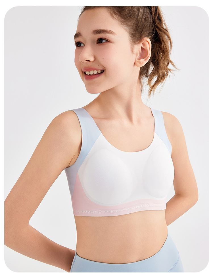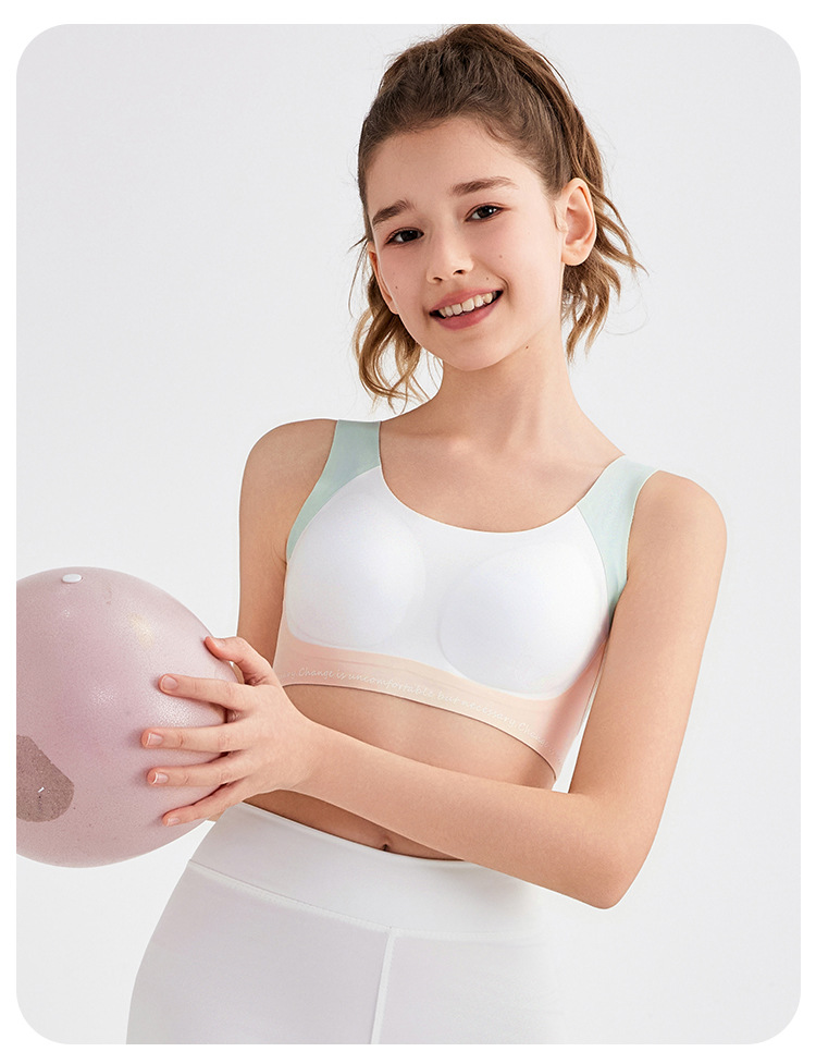 중학생 속옷, 와이어 없음, A급 피부 친화적인 통기성 여아 브라, 심리스 충격 흡수 발달기 여성용 스포츠 조끼