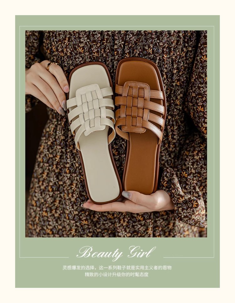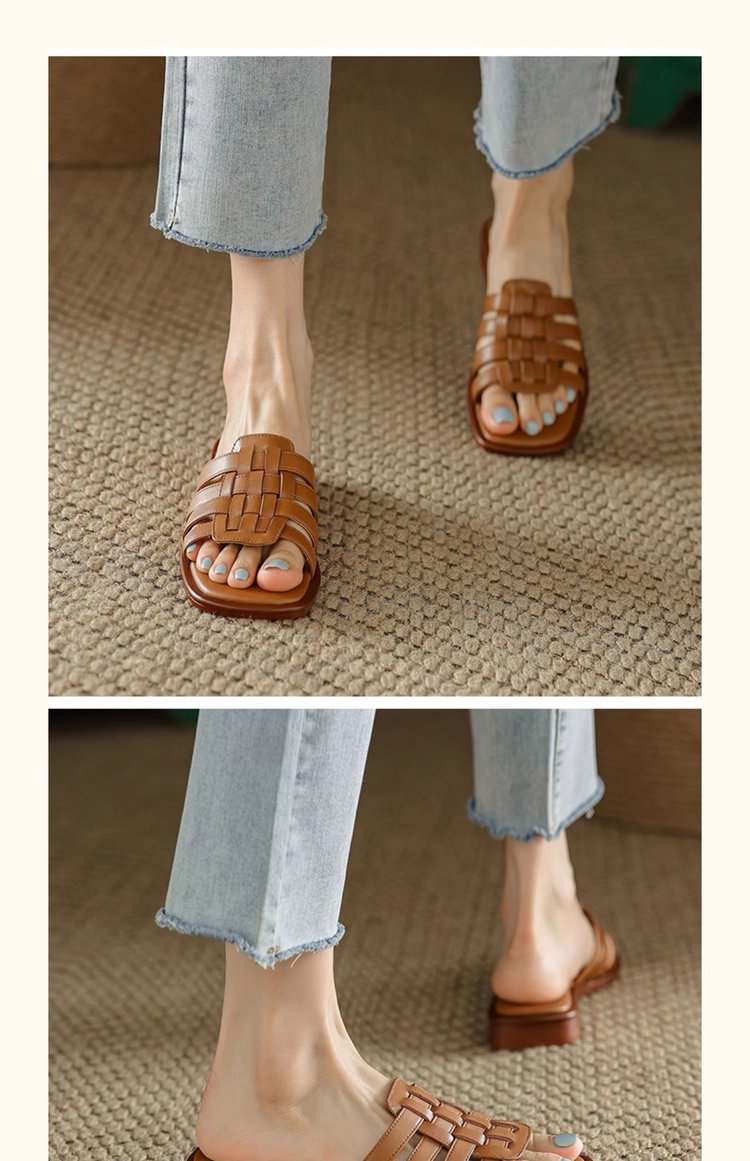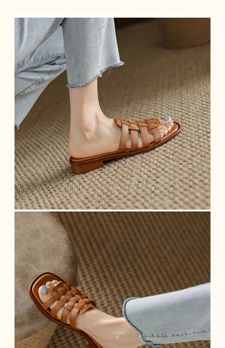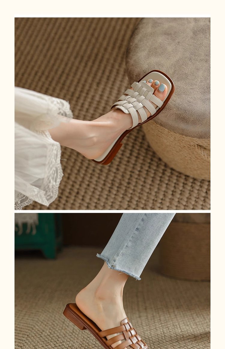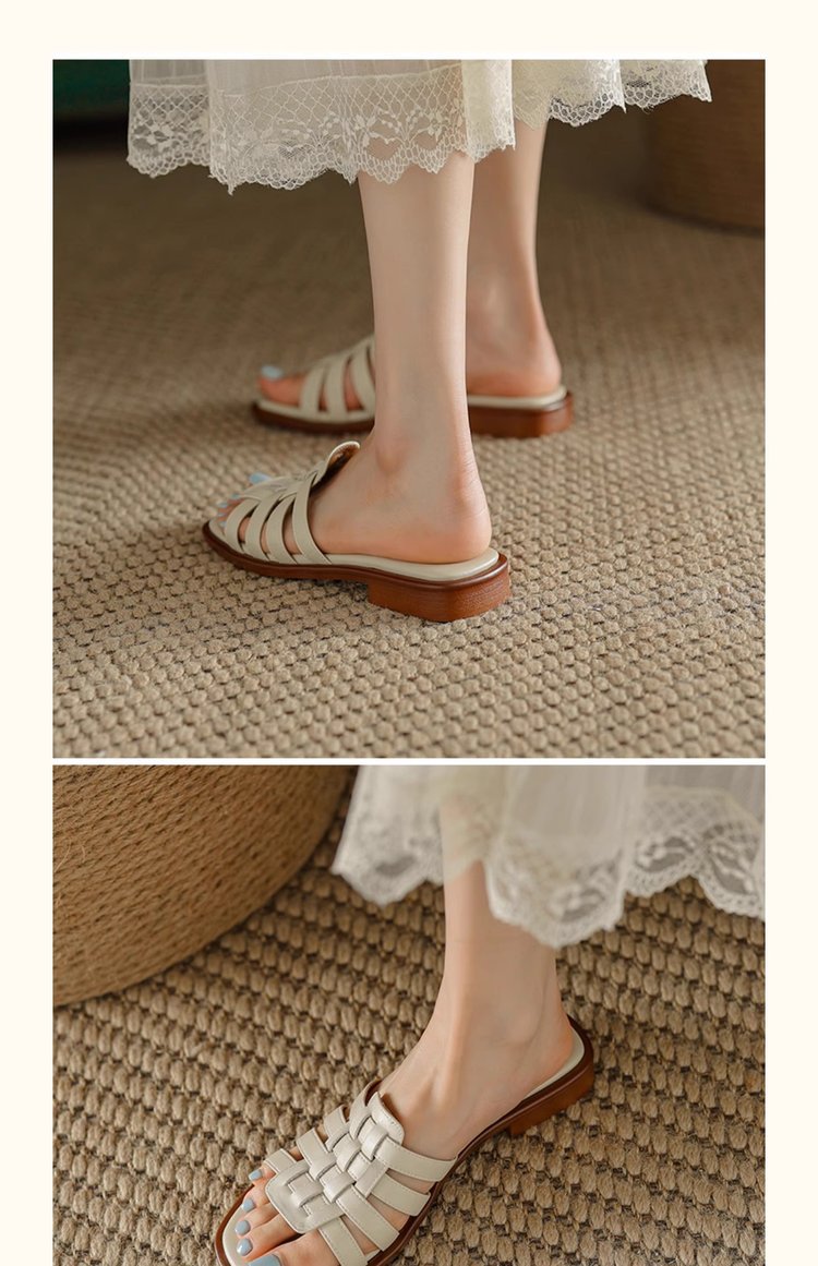 부드러운 가죽 버전 ~ 로마 스타일 슬라이드와 슬리퍼 여성의 2025 여름 외부 부드러운 부드러운 가죽 샌들