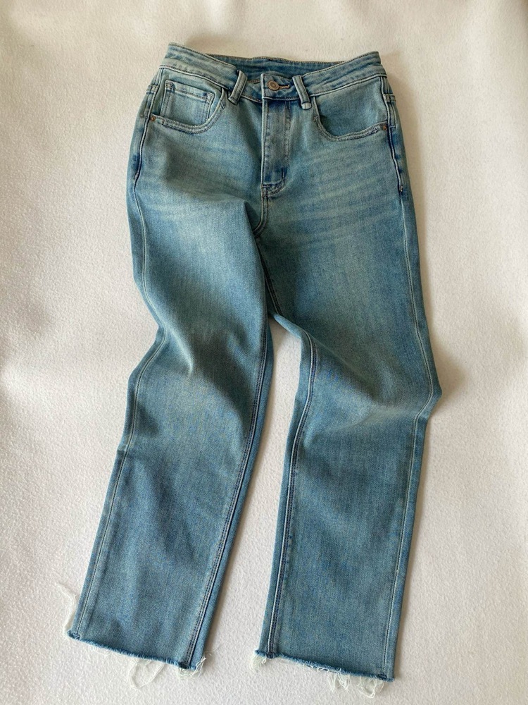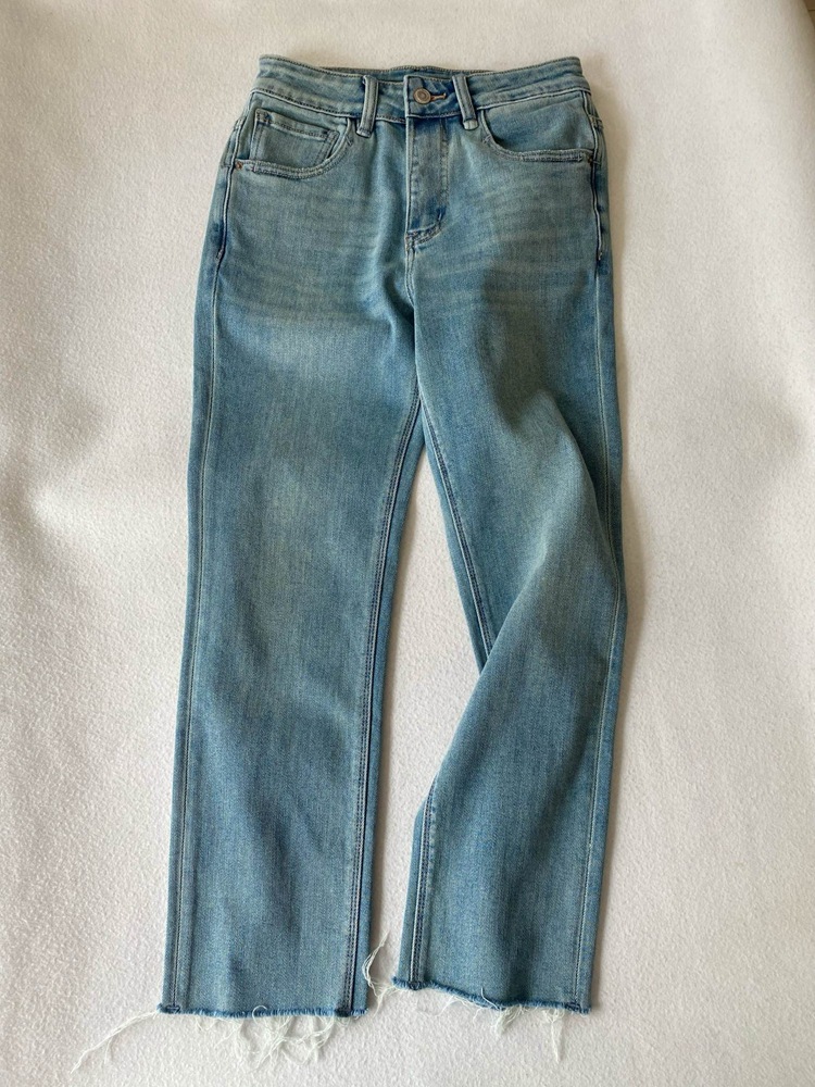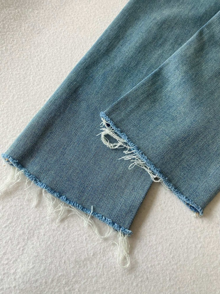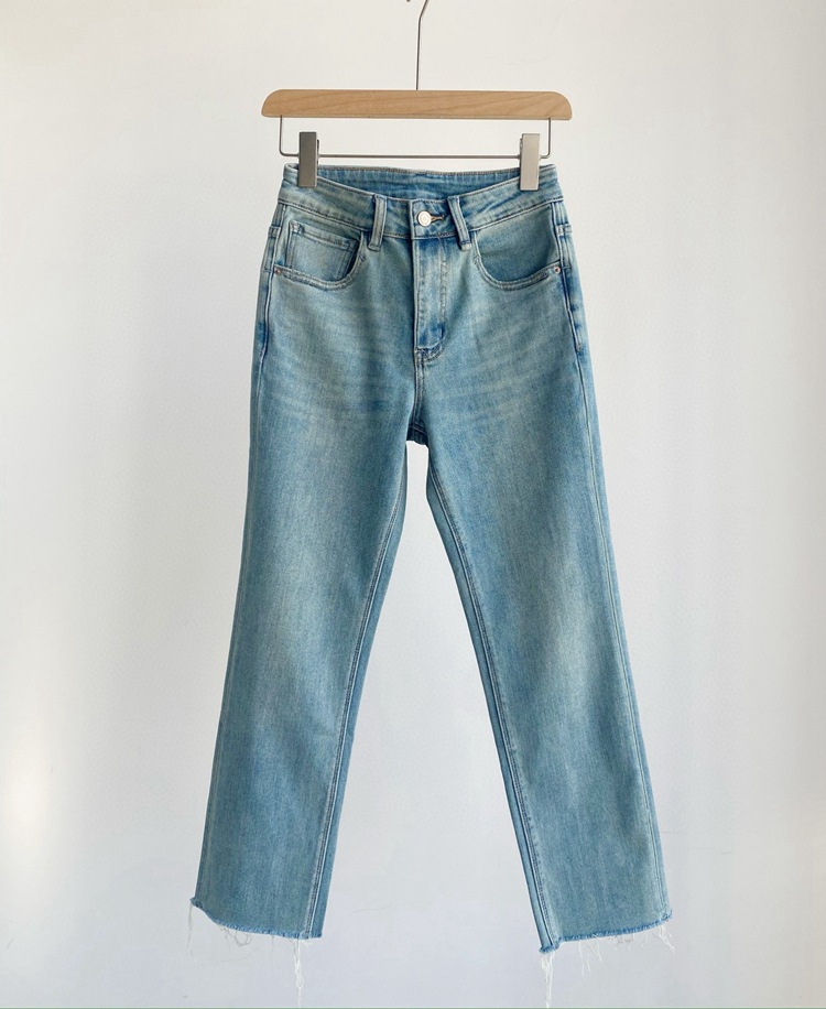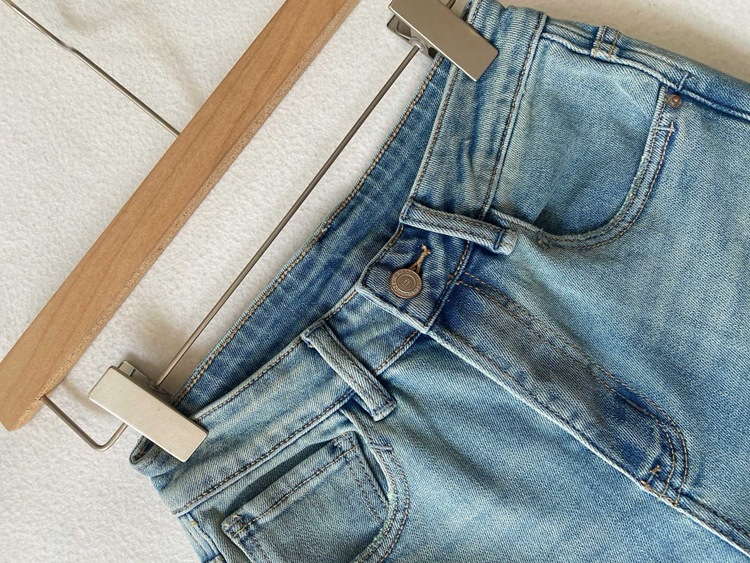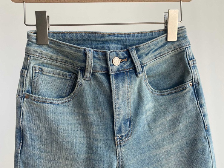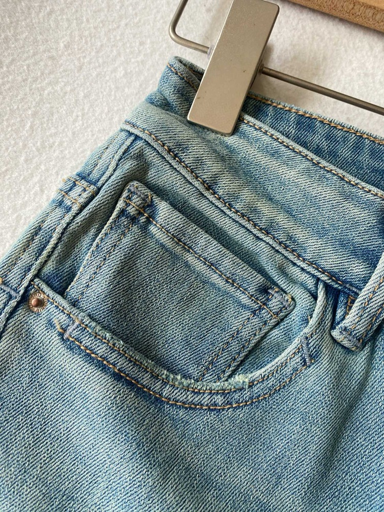 脚口毛边,后腰带真皮标,直筒版型显高,很轻薄,夏天也可以穿。