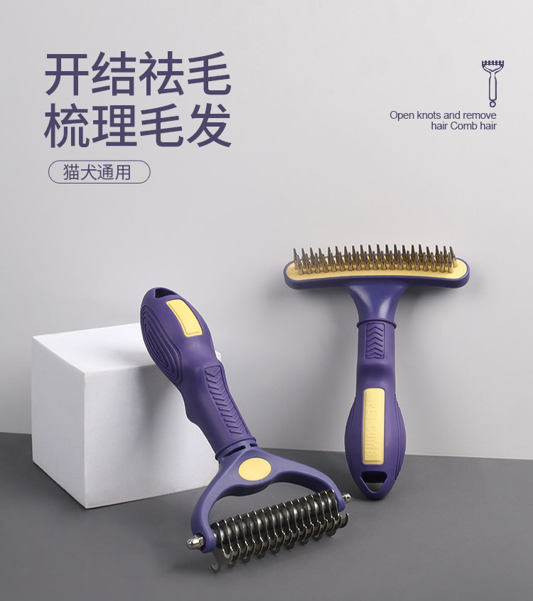 애완동물 털 엉킴 제거 빗 고양이 강아지 털 제거 빗 이중 칼날 엉킴 제거 도구