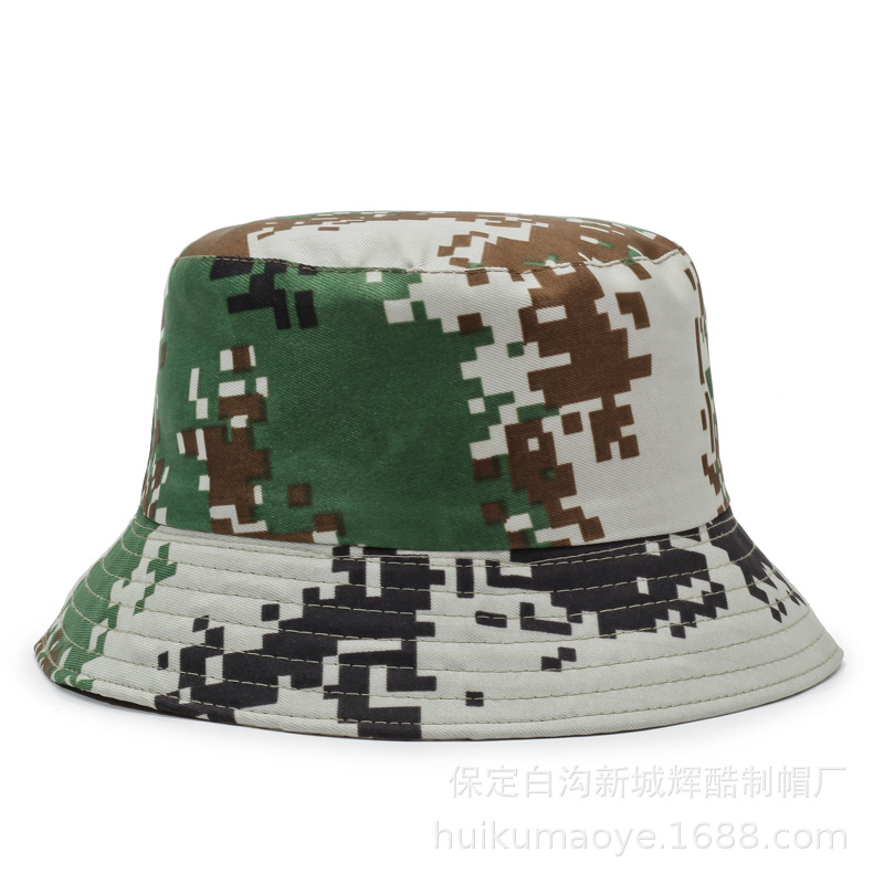 봄과 여름 얇은 통기성 태양 보호 군용 녹색 위장 분지 모자 해변 모자 여행 여행을위한 남성과 여성을위한 양면 어부 모자