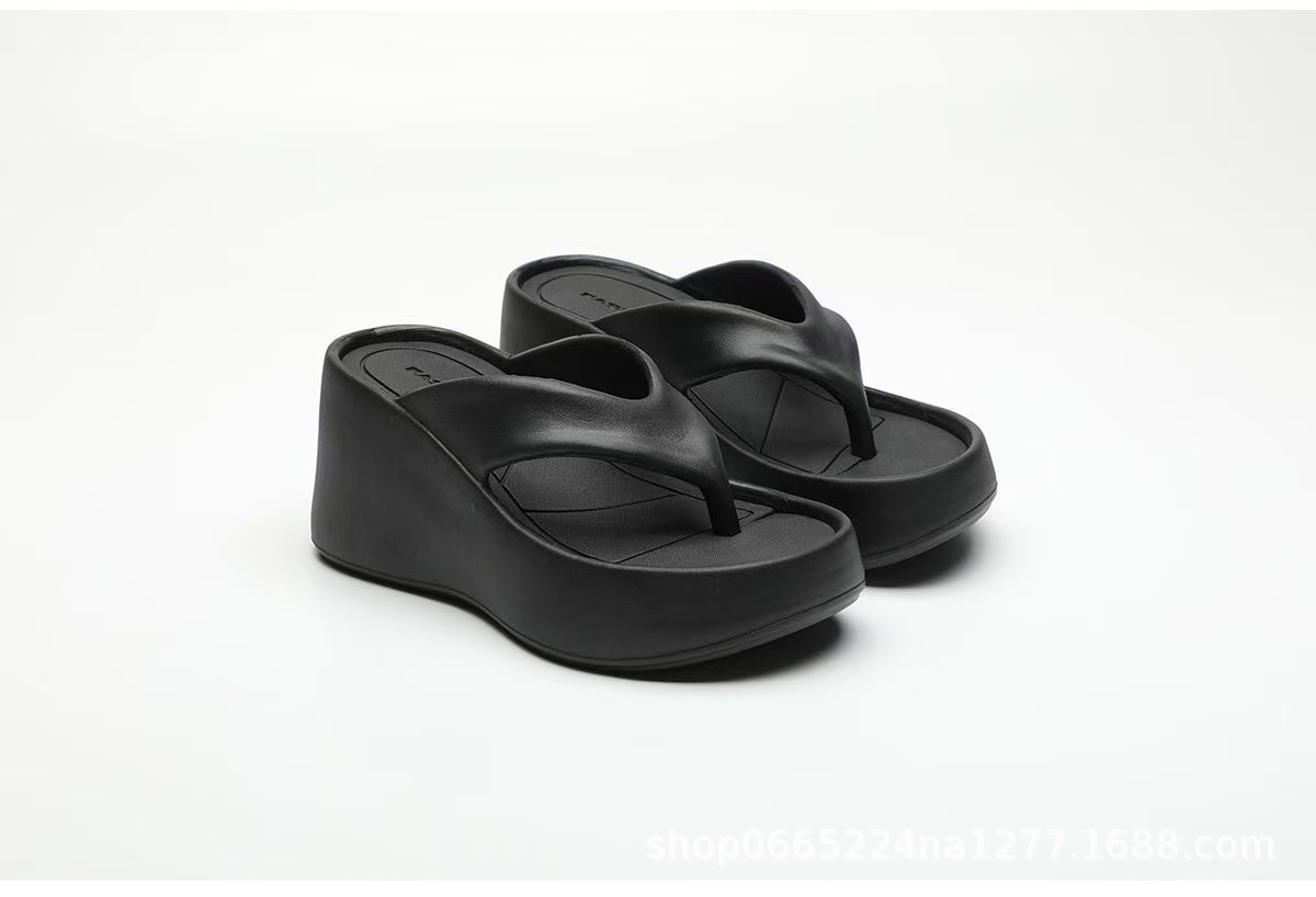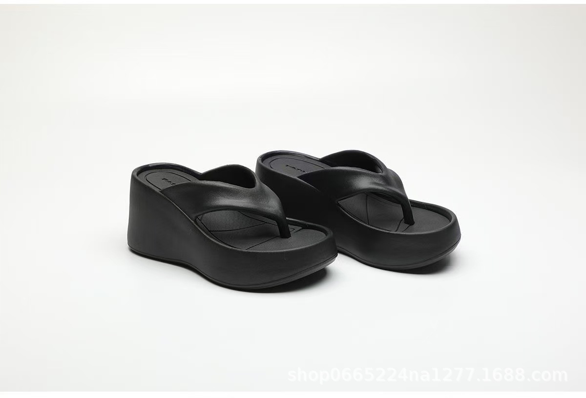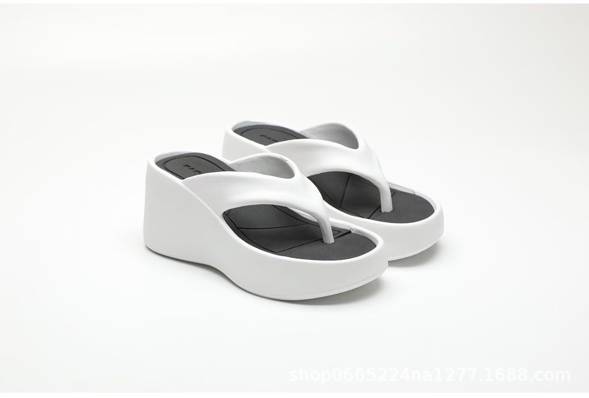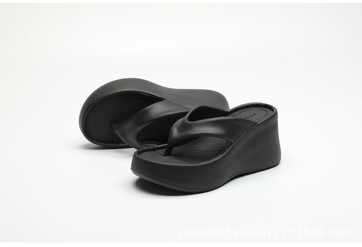 두꺼운 바닥 하이힐 플립 플롭스 여성 여름 2025 새로운 귀여운 활 외부 착용 미끄럼 방지 비치 샌들스토어 가기