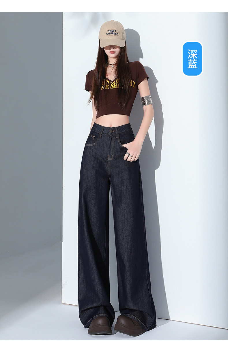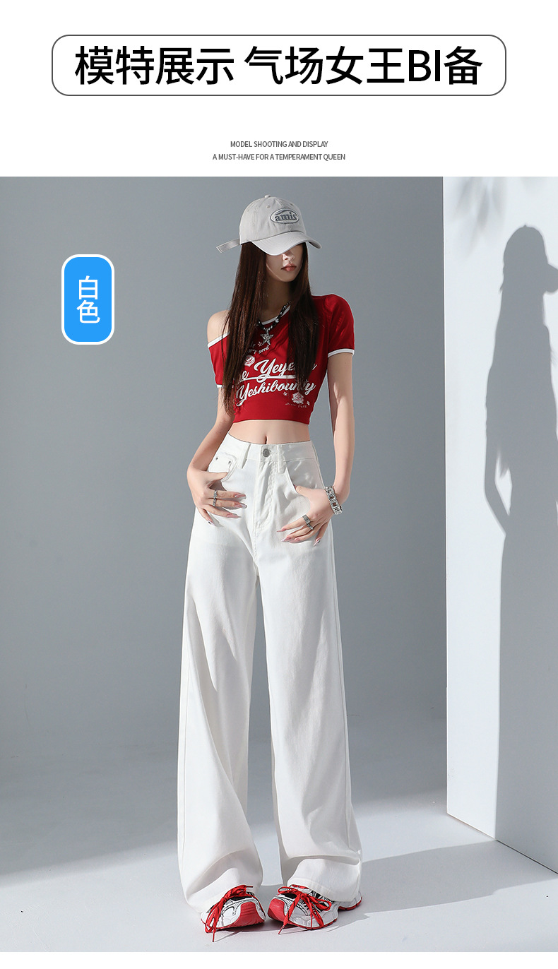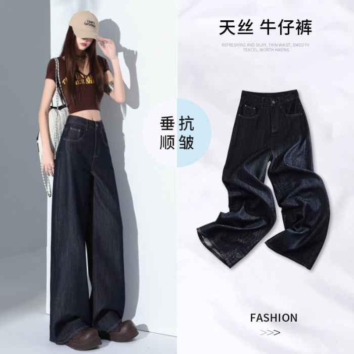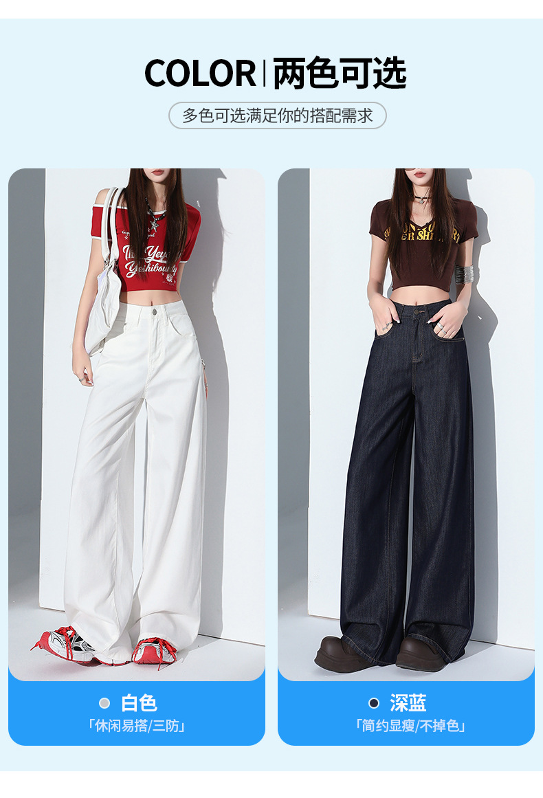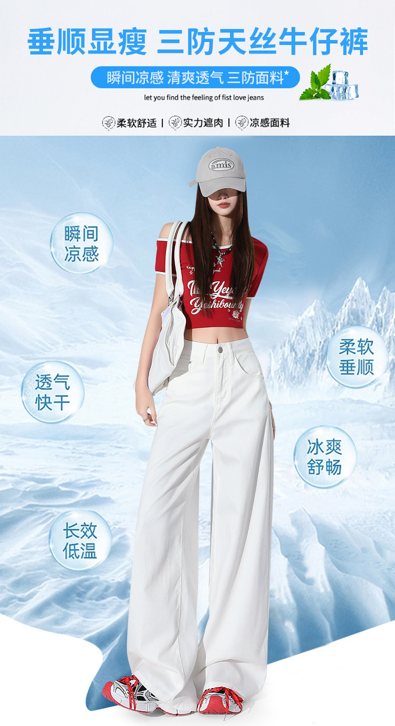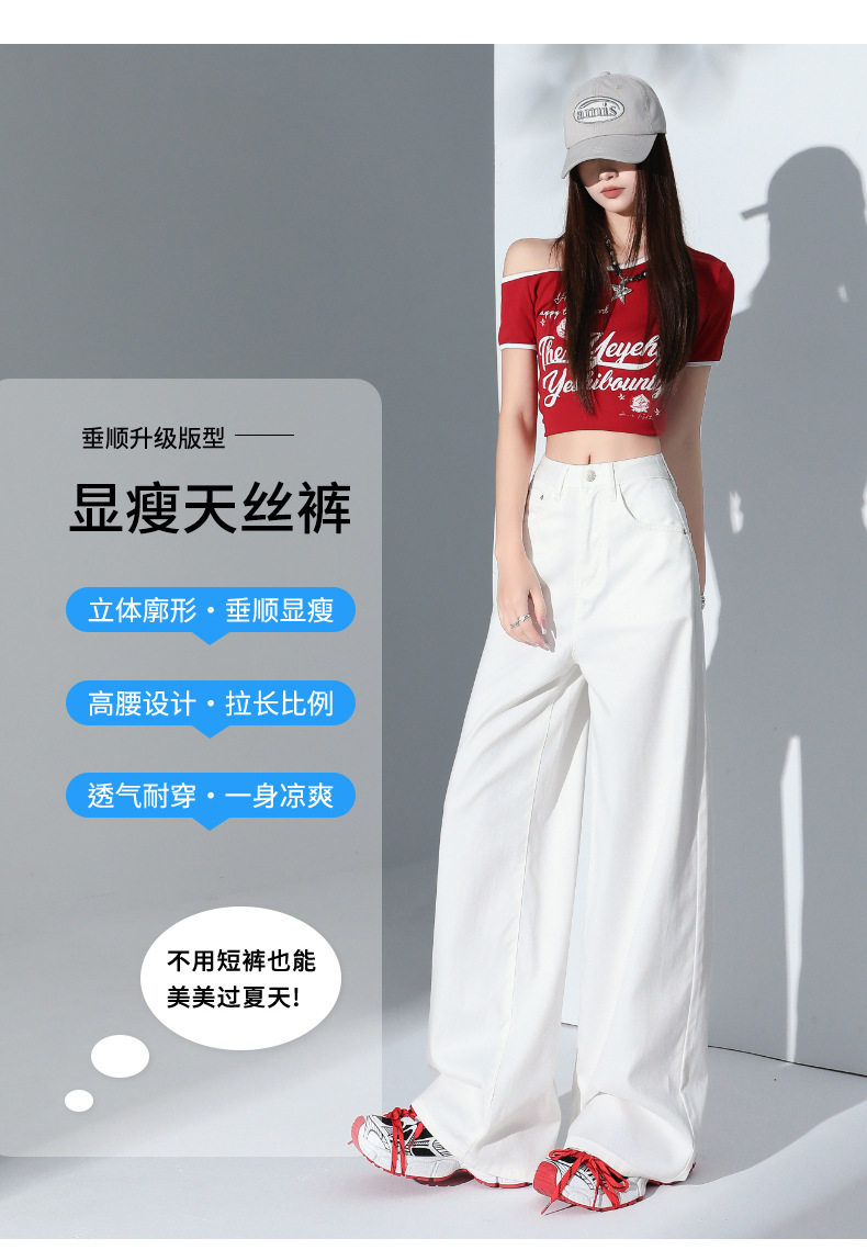 1403 여성용 화이트 와이드 팬츠 텐셀 청바지 봄 여름 쿨 3방수 소형 하이웨이스트 루즈한 바닥 길이 팬츠 트렌디