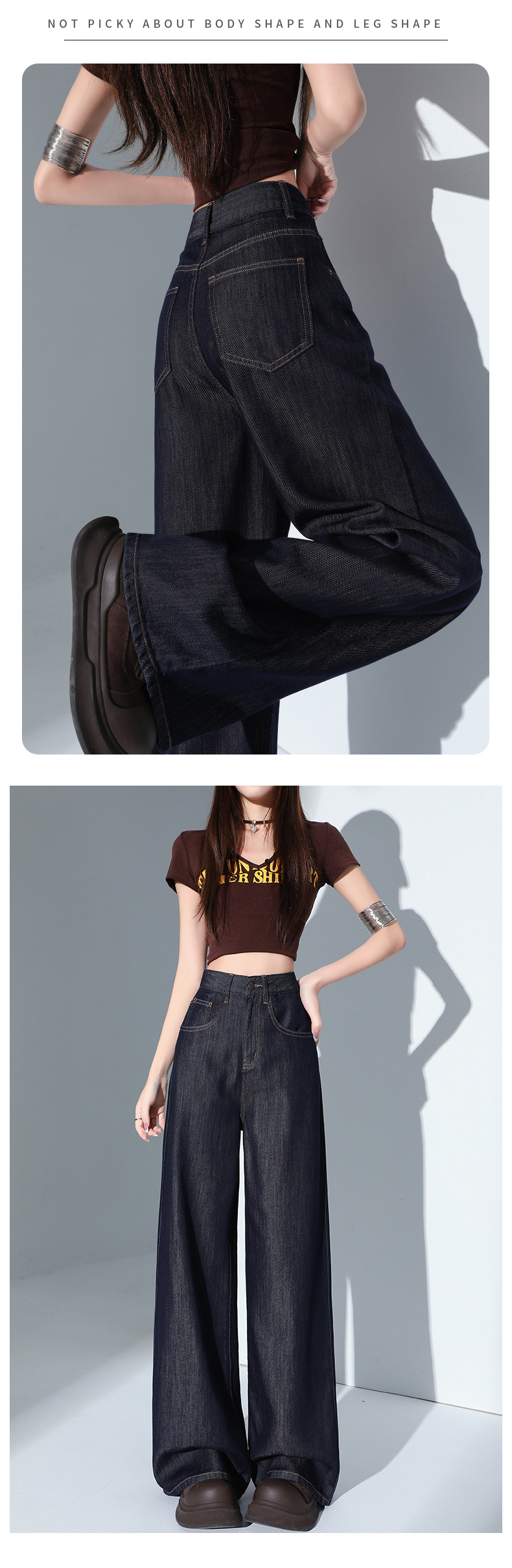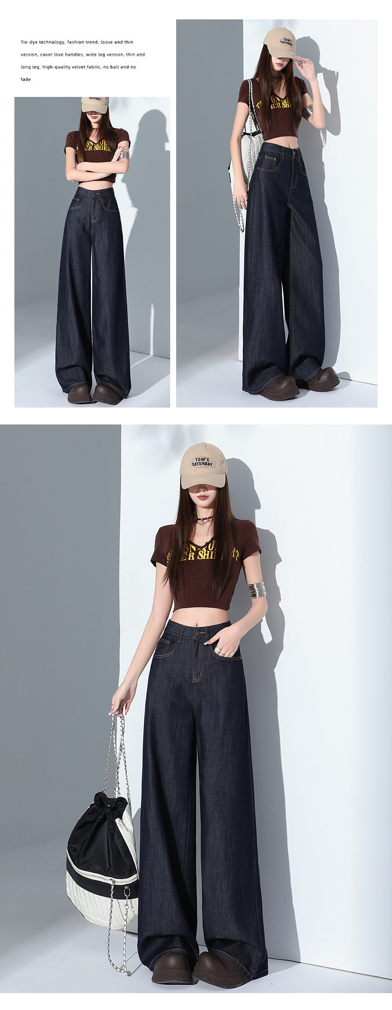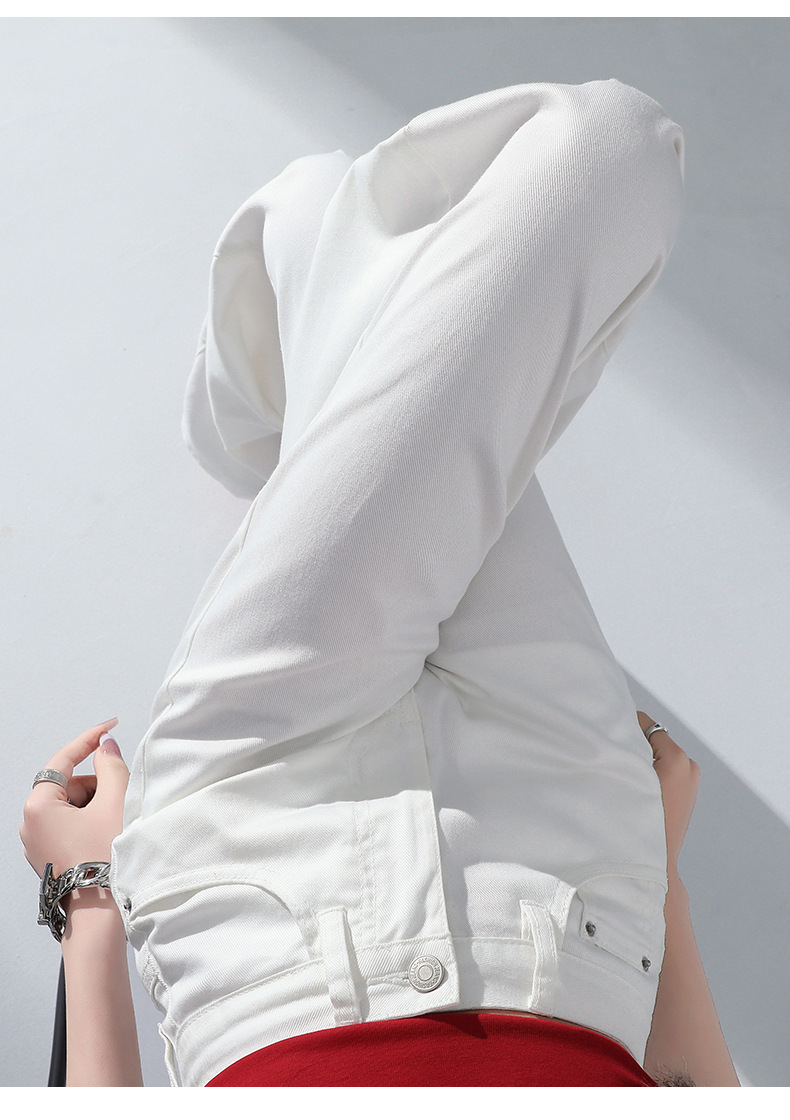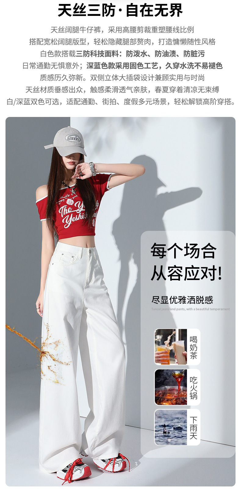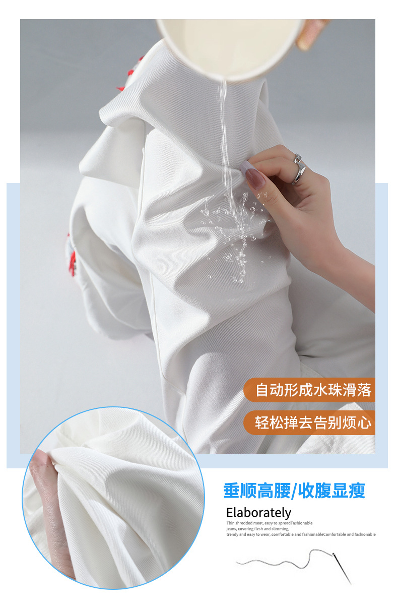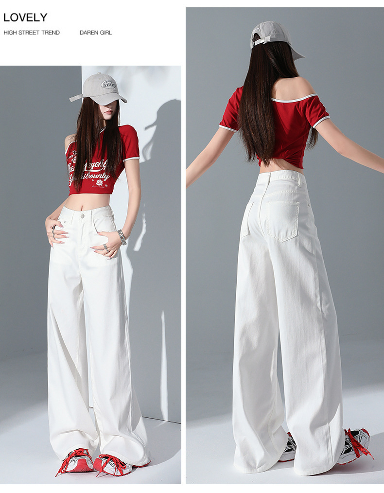 1403 여성용 화이트 와이드 팬츠 텐셀 청바지 봄 여름 쿨 3방수 소형 하이웨이스트 루즈한 바닥 길이 팬츠 트렌디