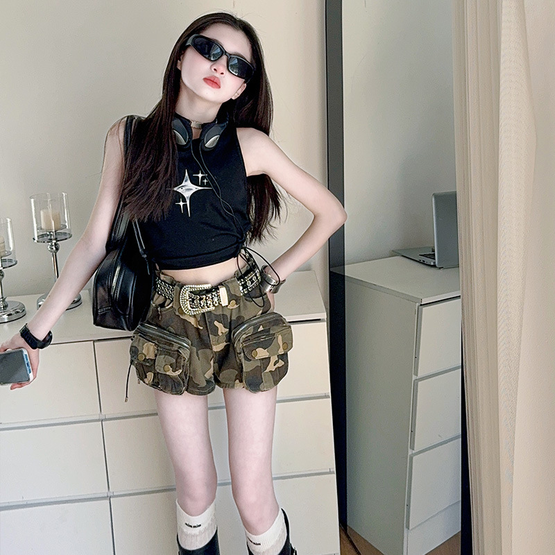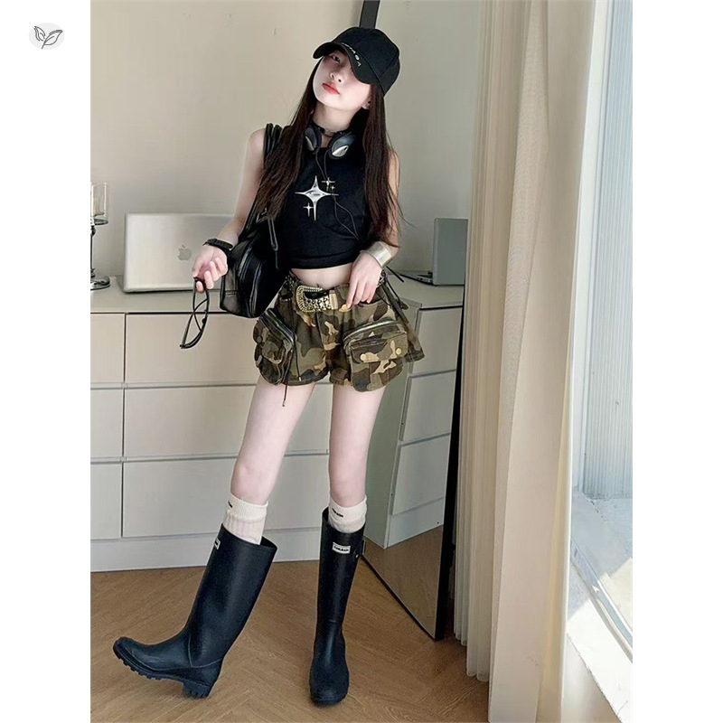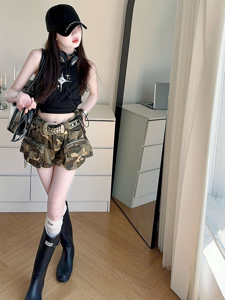 어린이 바지 2025 여름 새 소녀 트렌디 팬 반바지 여성 중형 및 대형 어린이 스타일 A 라인 와이드 레그 팬츠 위장 핫 바지 국경스토어 가기