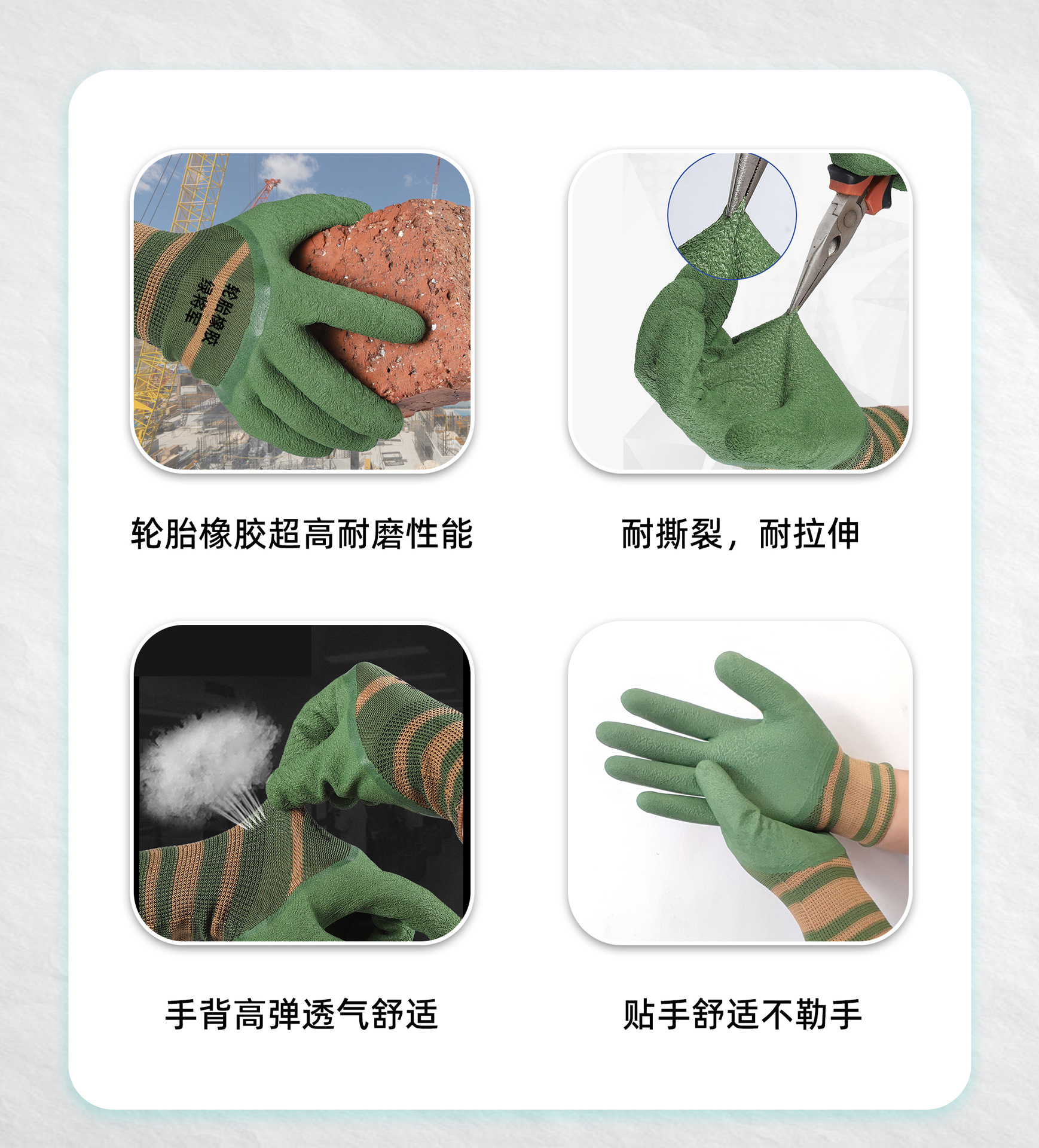 무료 배송 타이어 고무 노동 보호 장갑 건설 현장 작업 내마모성 라텍스 통기성 미끄럼 방지 라텍스 장갑스토어 가기
