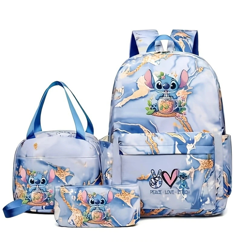 초등 및 중등 학생을 위한 국경 간 인기 판매 만화 스티치 학교 가방, 배낭, 식사 가방, 연필 가방, 공장 직접 판매스토어 가기