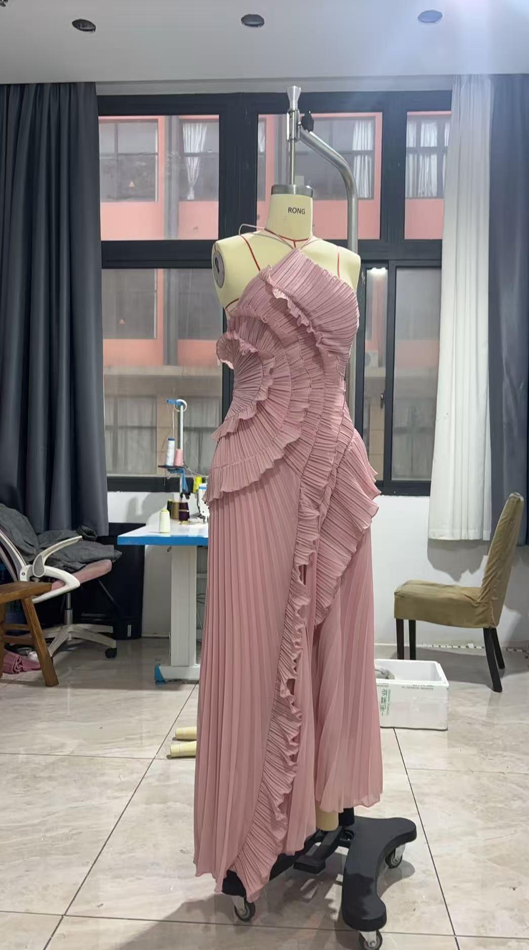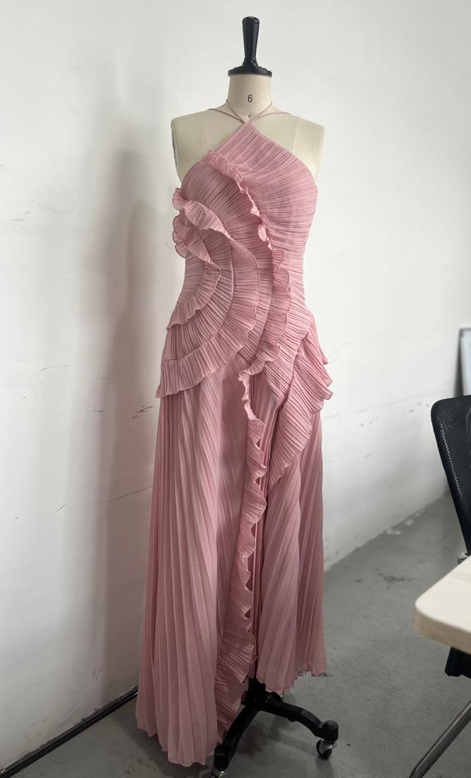 재고 있음--해외 아마존 및 알리익스프레스 인기상품 유럽 및 미국 여성복 신상 패션 주름 홀터넥 섹시 드레스