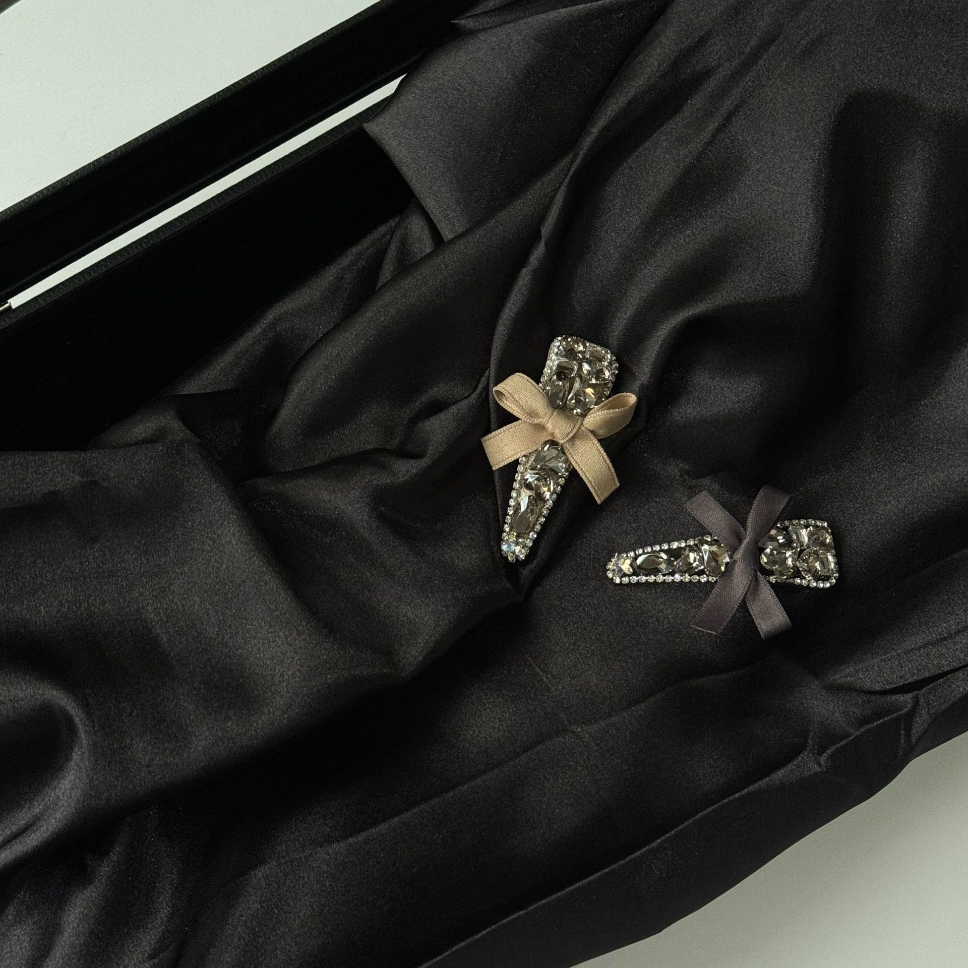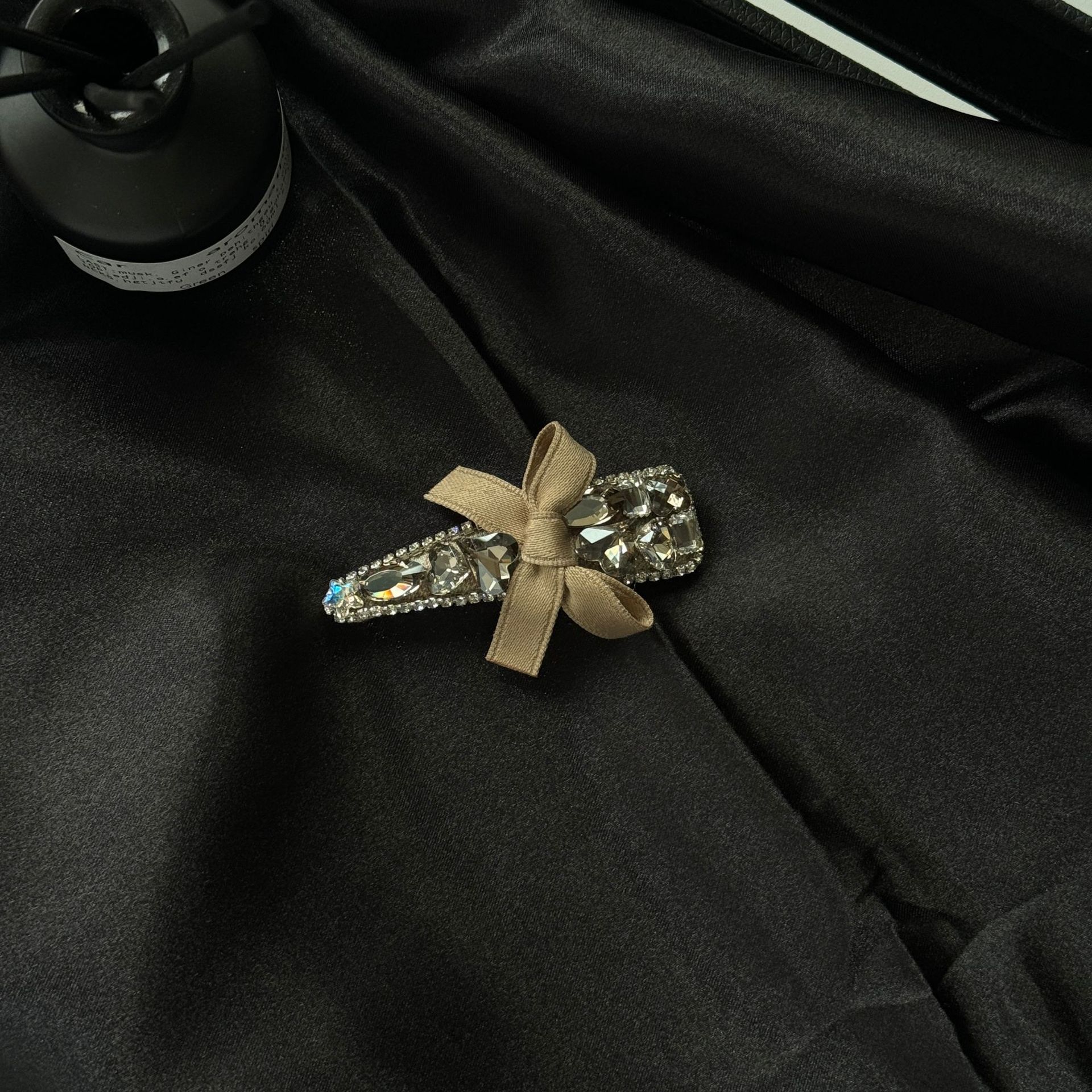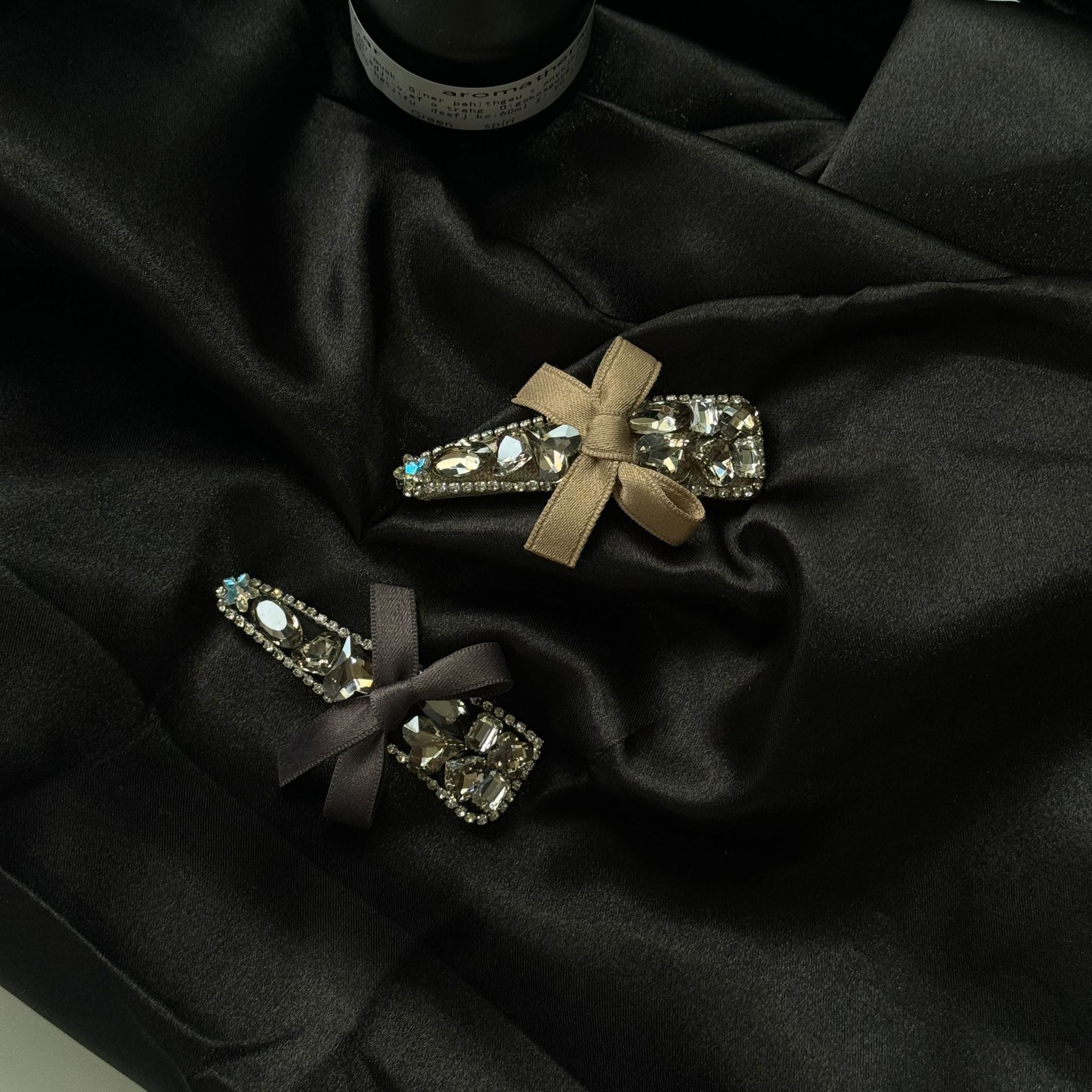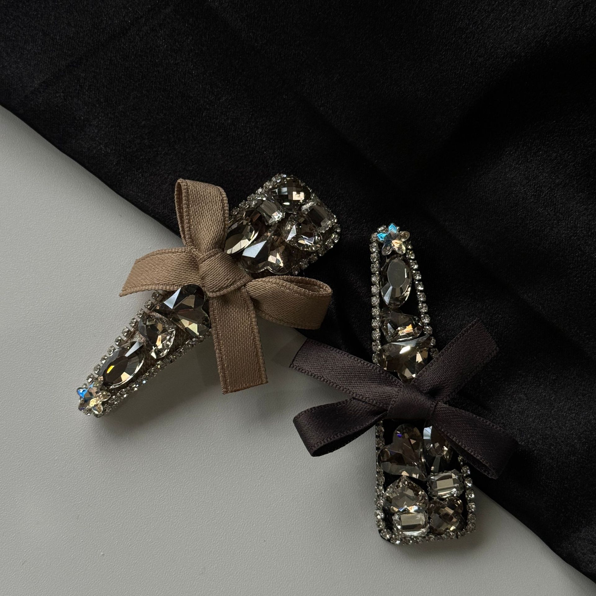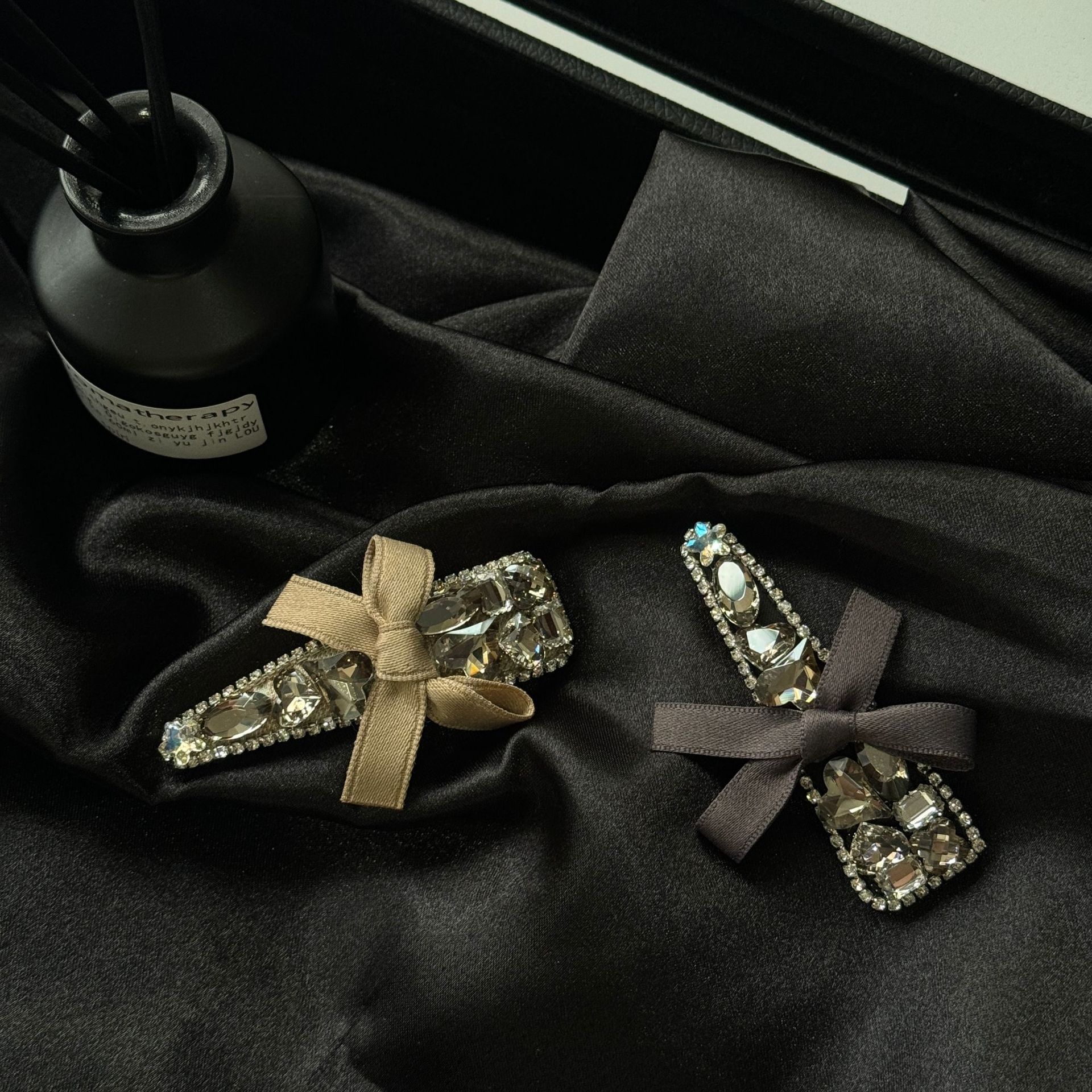 한국 신간 고급 라인스톤 헤어핀 라이트 럭셔리 중공업 보우 니치 뱅스 사이드 클립 헤드웨어