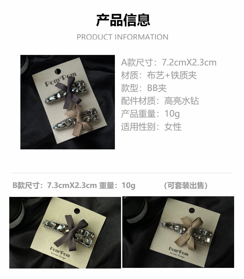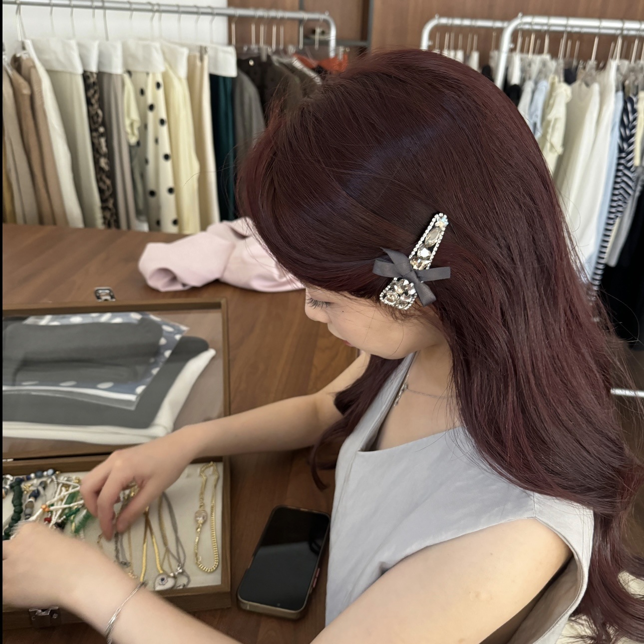 한국 신간 고급 라인스톤 헤어핀 라이트 럭셔리 중공업 보우 니치 뱅스 사이드 클립 헤드웨어스토어 가기