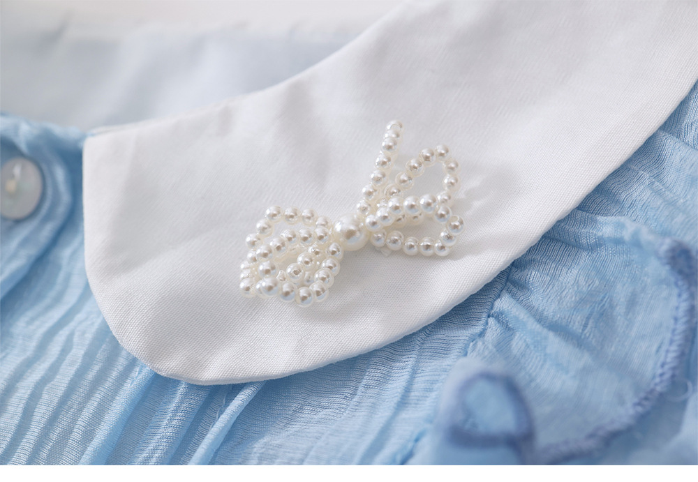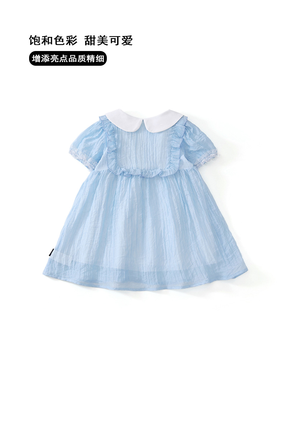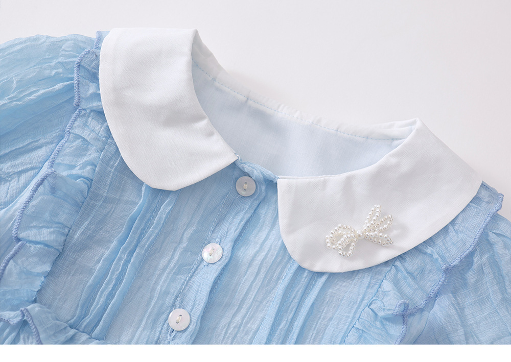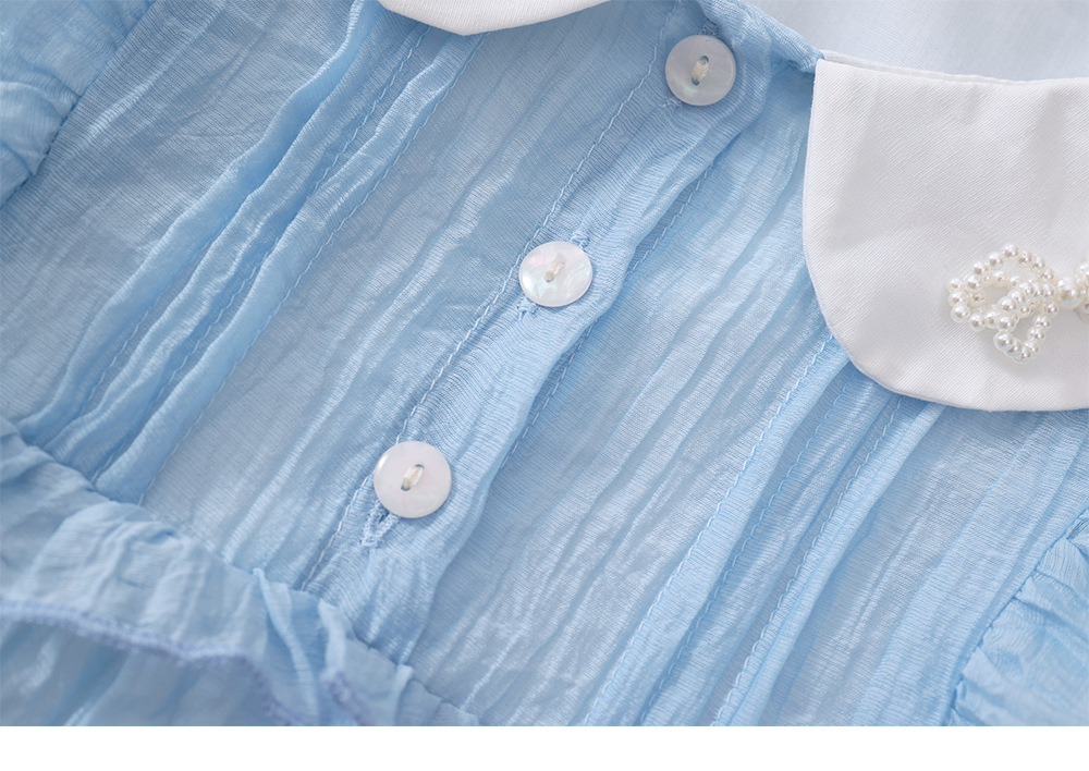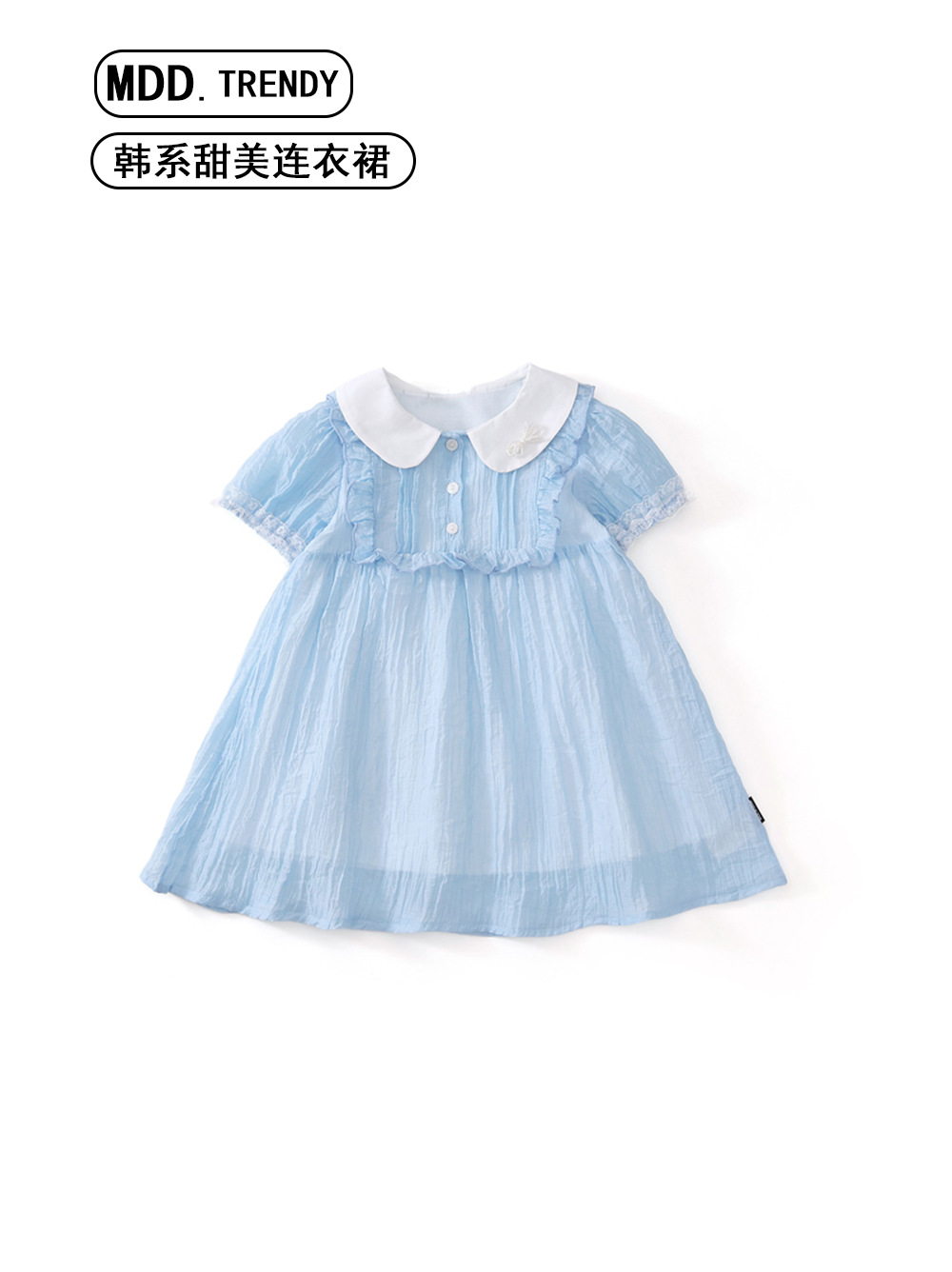 MDD 소녀 귀여운 원피스 2025 여름 새로운 도착 공주 푹신한 스커트 우유 사랑스러운 블루 타이트 허리 인형 칼라