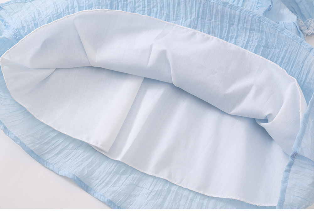 MDD 소녀 귀여운 원피스 2025 여름 새로운 도착 공주 푹신한 스커트 우유 사랑스러운 블루 타이트 허리 인형 칼라스토어 가기