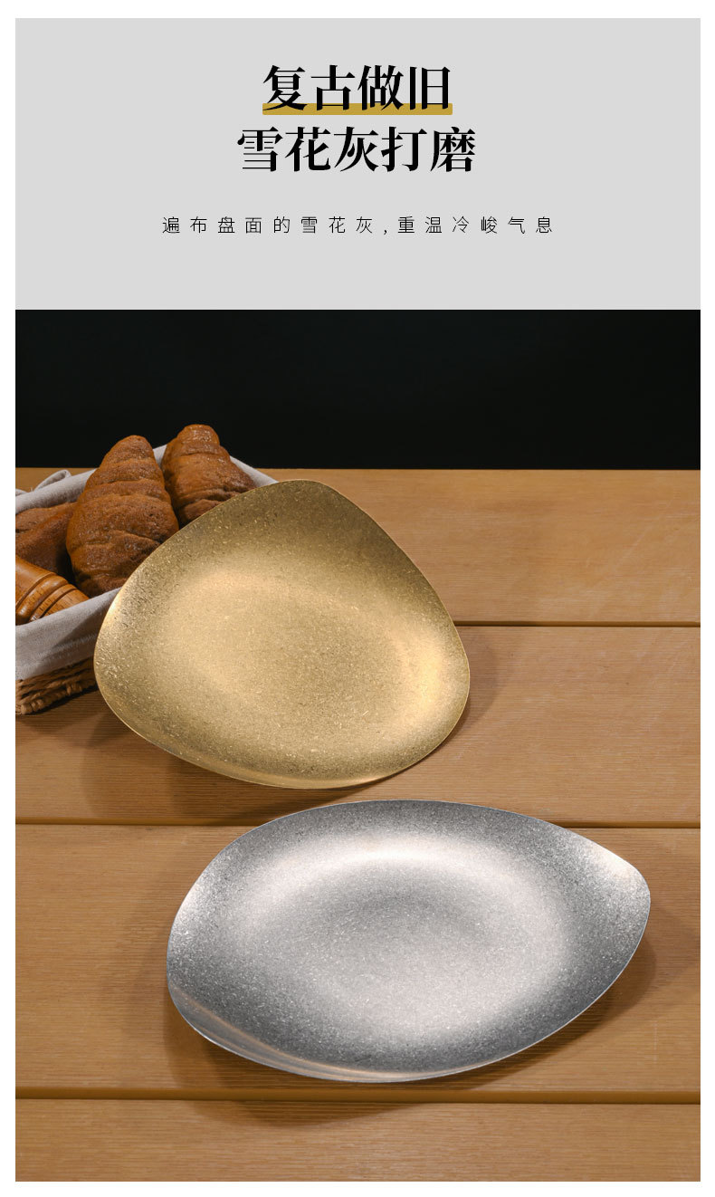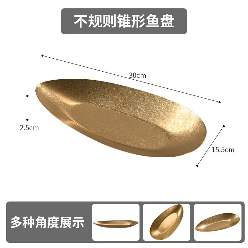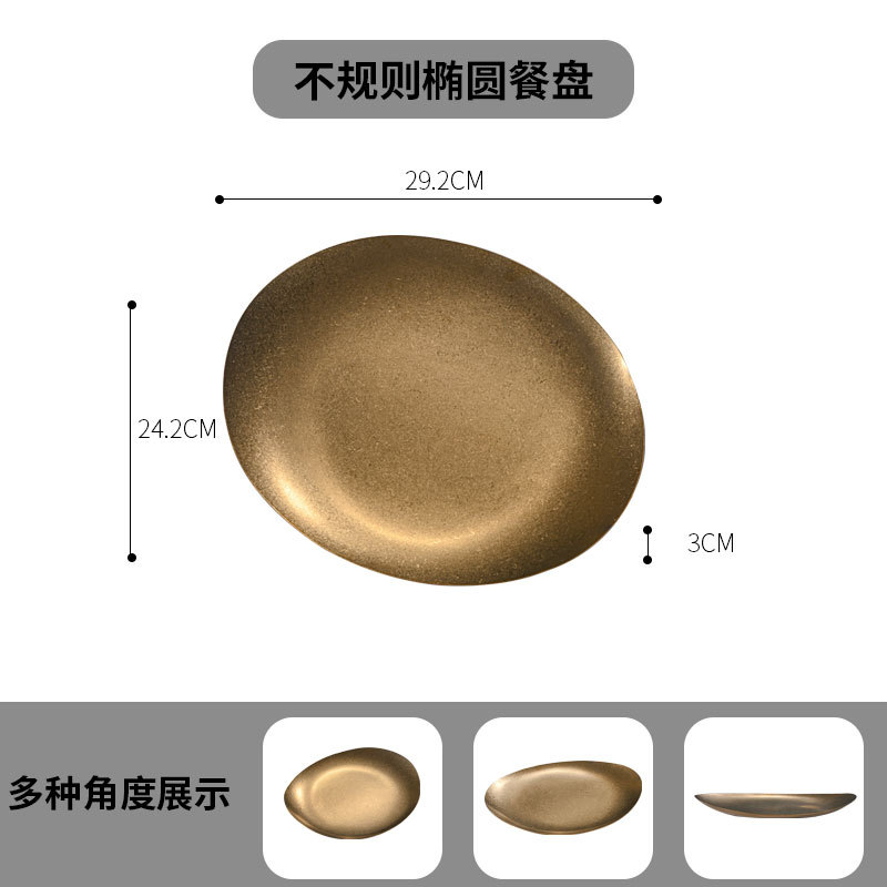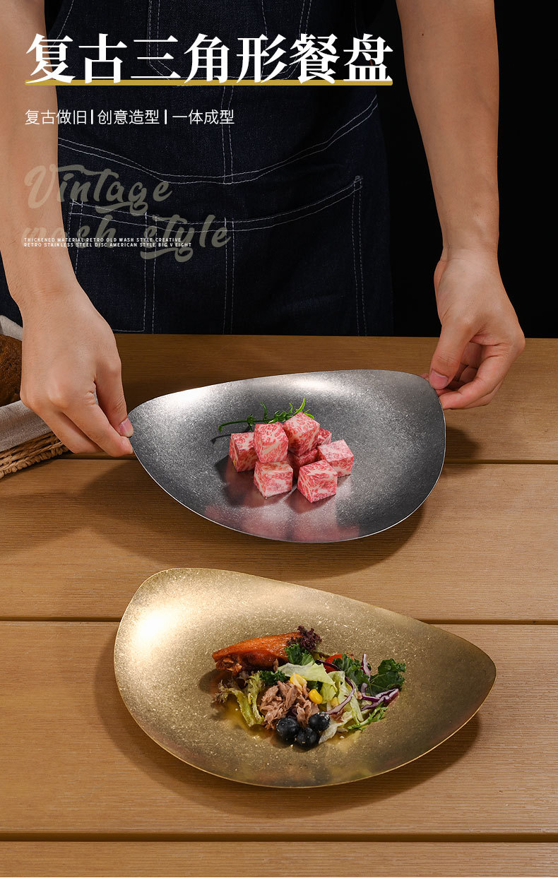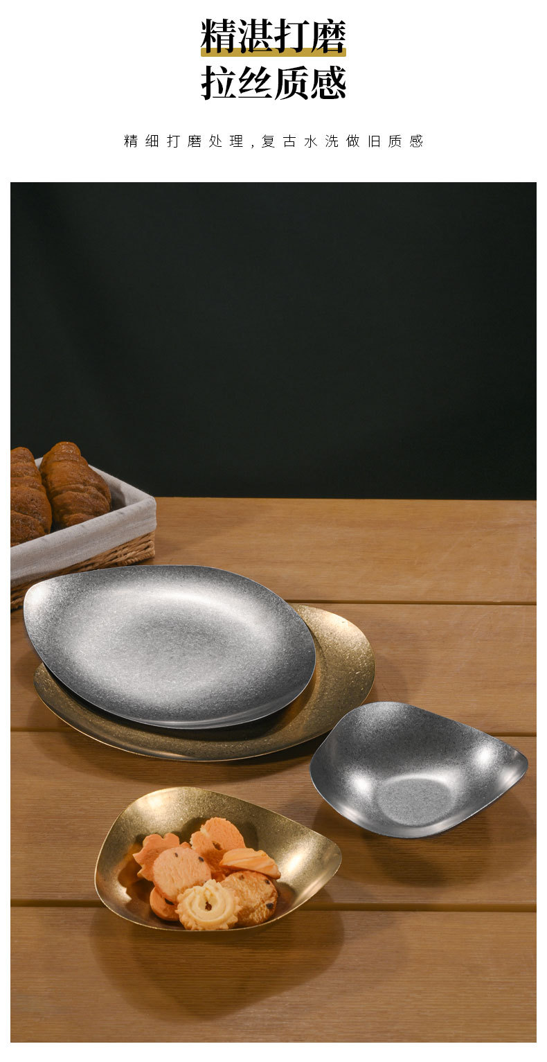 가벼운 고급 복고풍 금 접시 304 스테인레스 스틸 접시 특별한 모양의 불규칙한 얕은 접시 산업 스타일 트레이 고가치 디너 접시스토어 가기