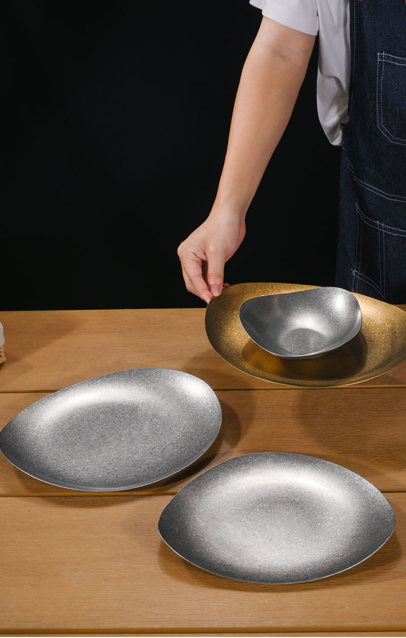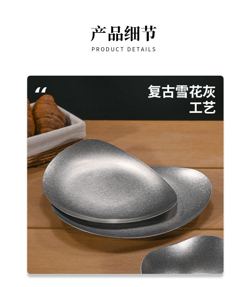 가벼운 고급 복고풍 금 접시 304 스테인레스 스틸 접시 특별한 모양의 불규칙한 얕은 접시 산업 스타일 트레이 고가치 디너 접시