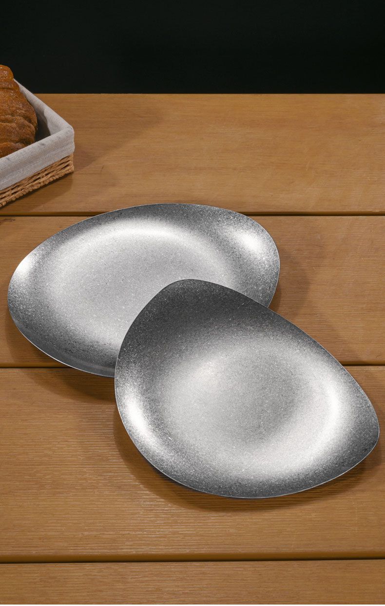 • 불규칙한 부채꼴 디너 플레이트(빈티지 실버)