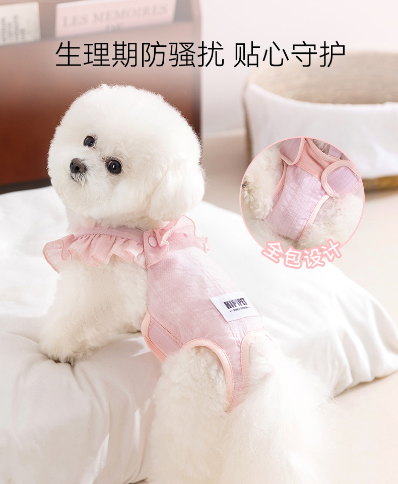 강아지 생리 팬티 얇고 통기성 좋은 생리 팬티 테디 소형견 의류 암컷 강아지 전신 보호 방해 방지 애완동물 옷