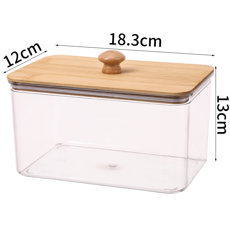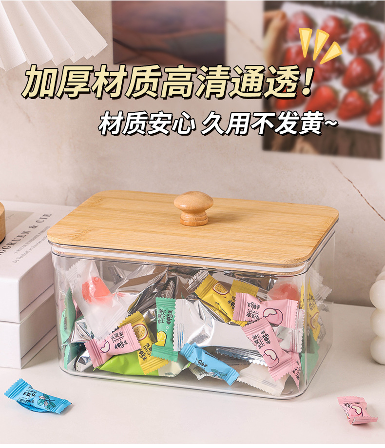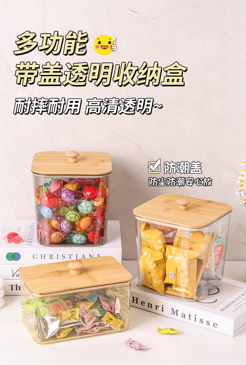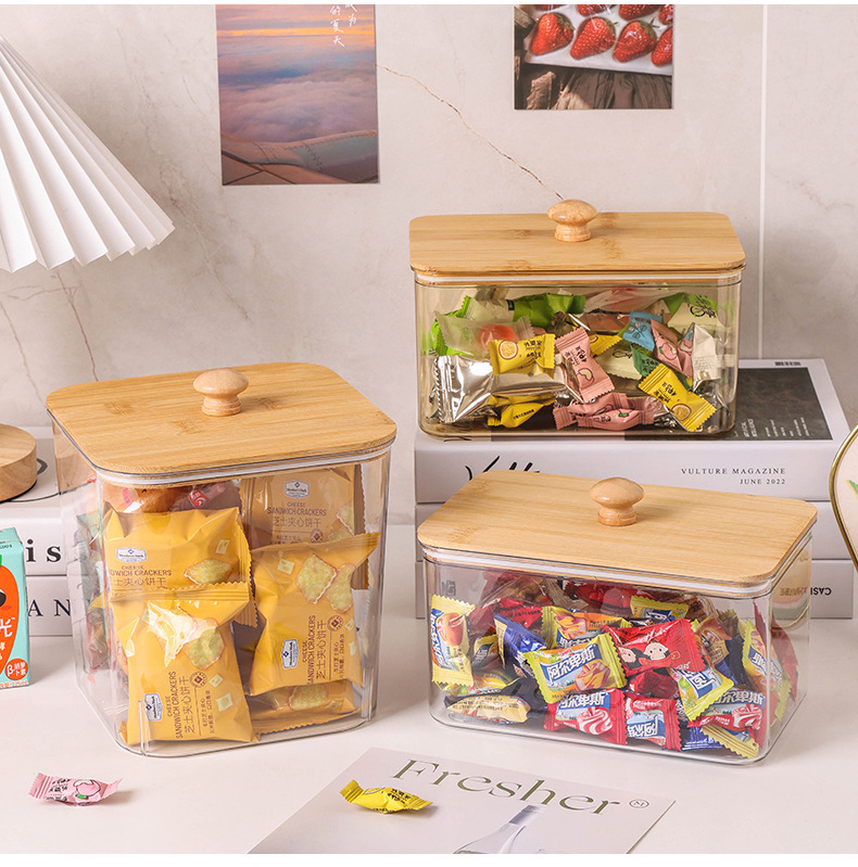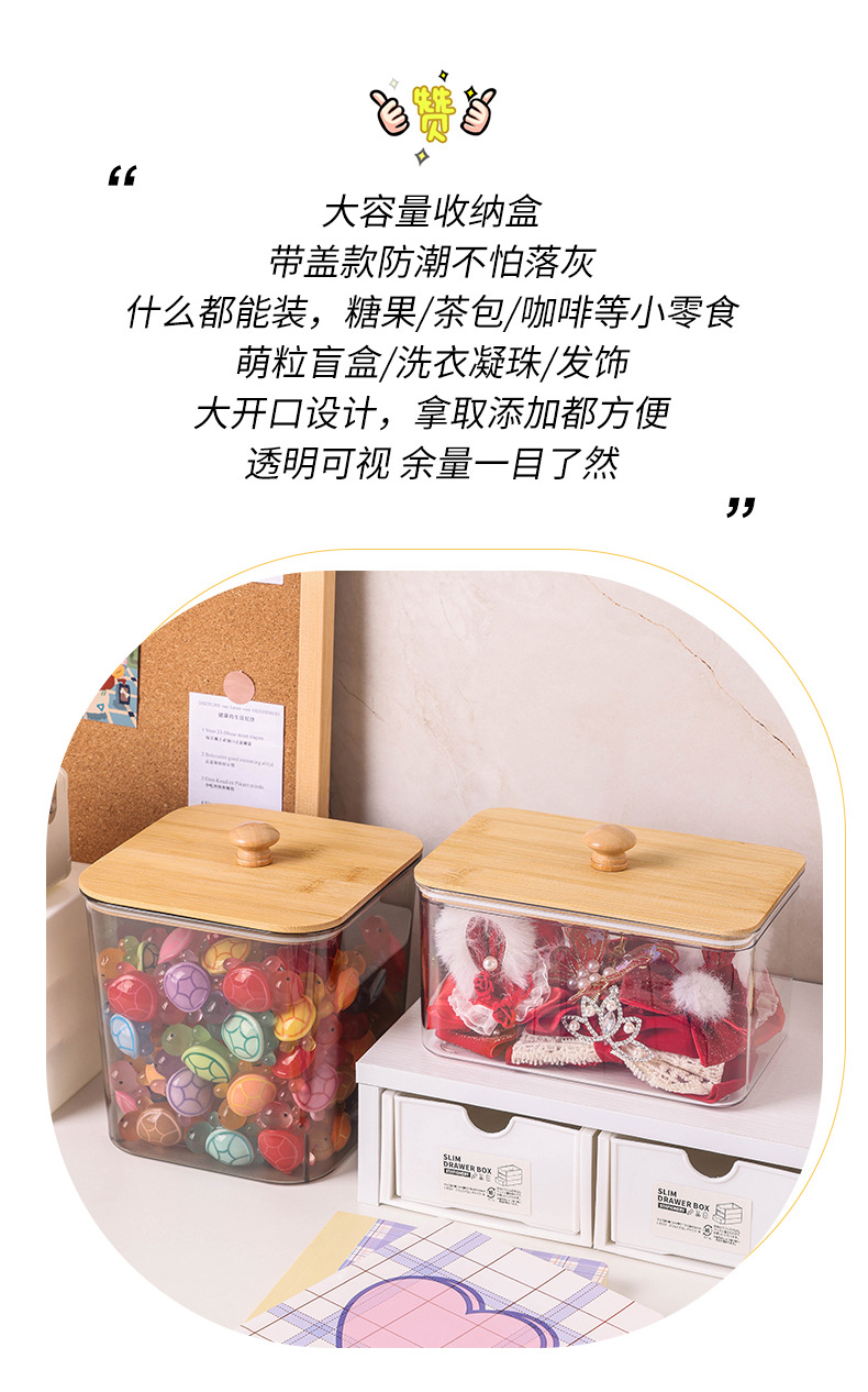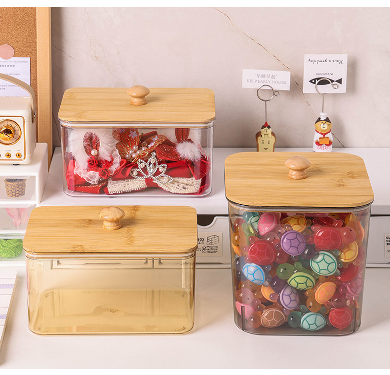 대나무 뚜껑 보관 바구니 가정용 거실 문구 장난감 보관 상자를 가진 투명한 데스크탑 방진 저장 상자 간식 잡화스토어 가기