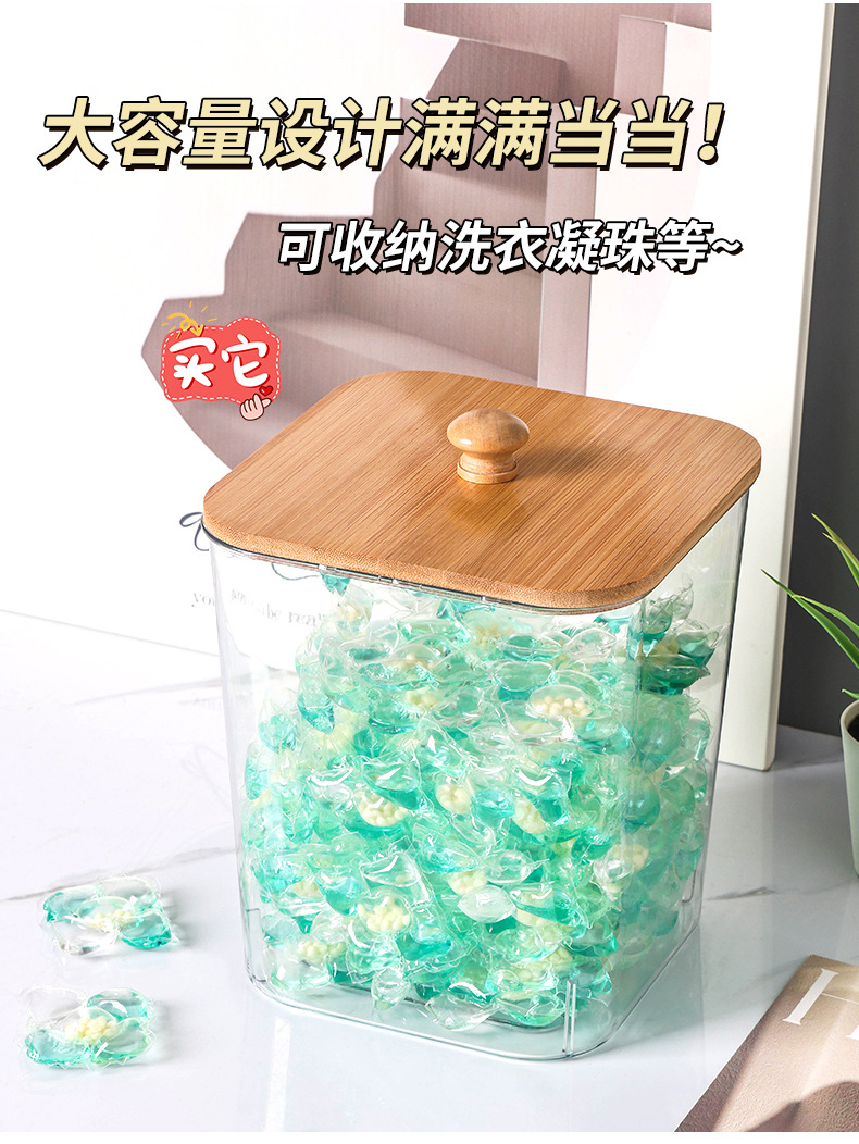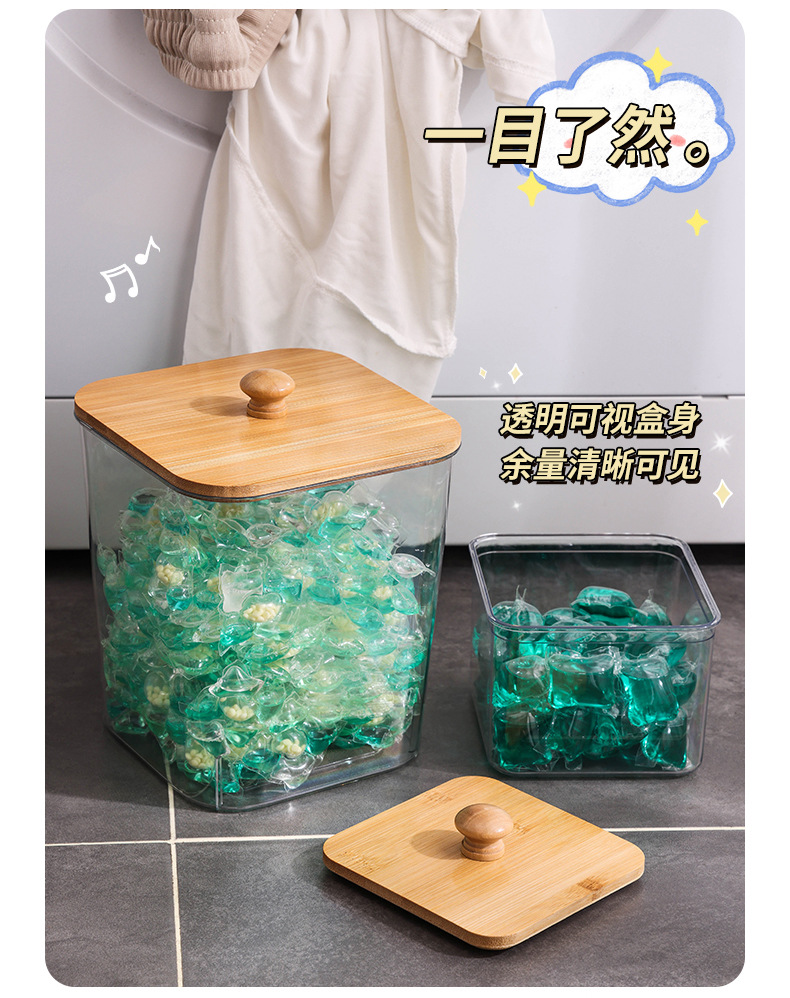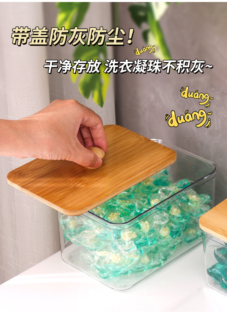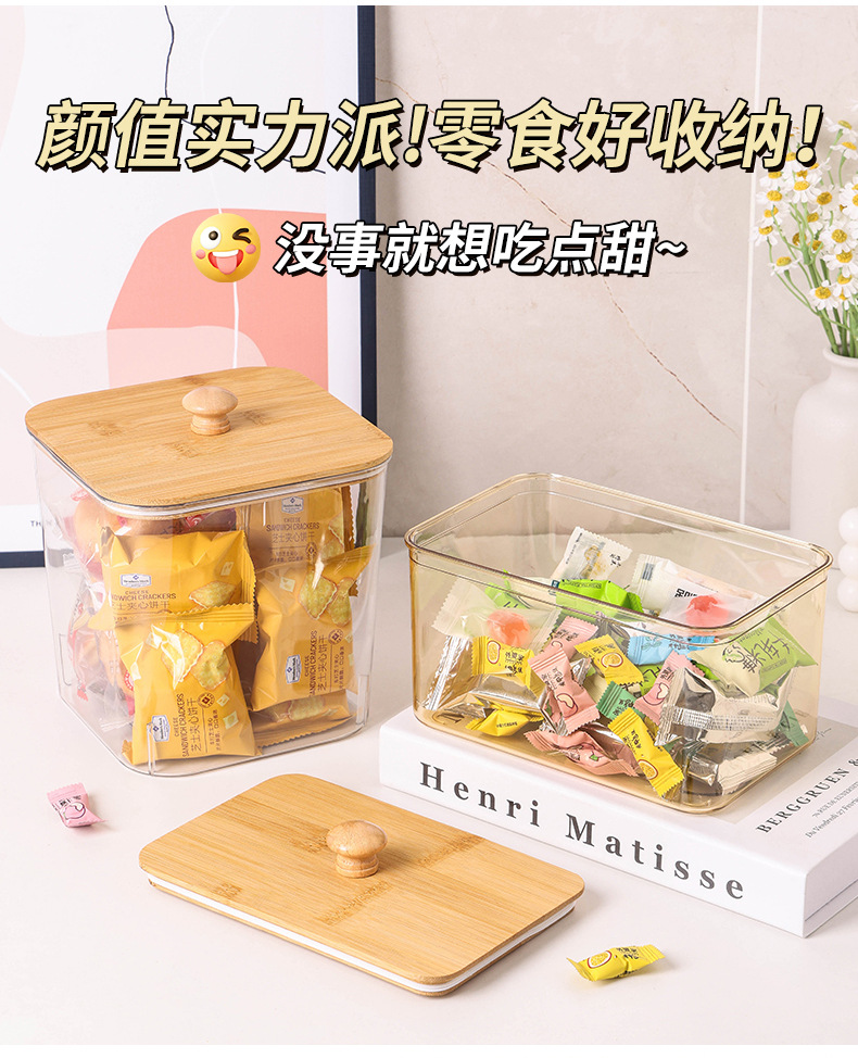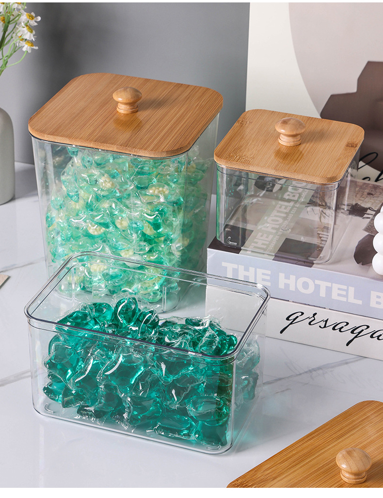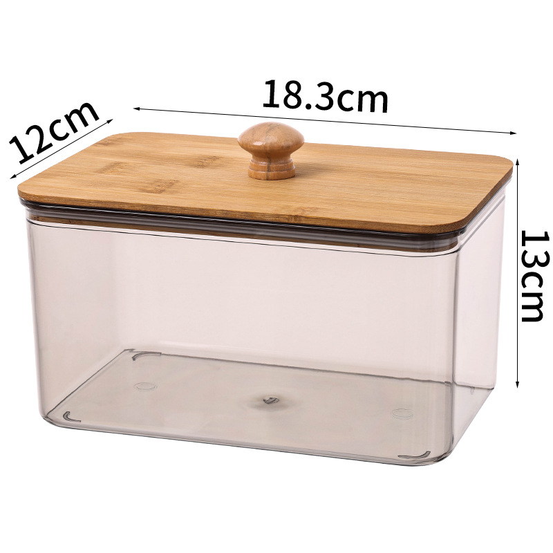 대나무 뚜껑 보관 바구니 가정용 거실 문구 장난감 보관 상자를 가진 투명한 데스크탑 방진 저장 상자 간식 잡화스토어 가기