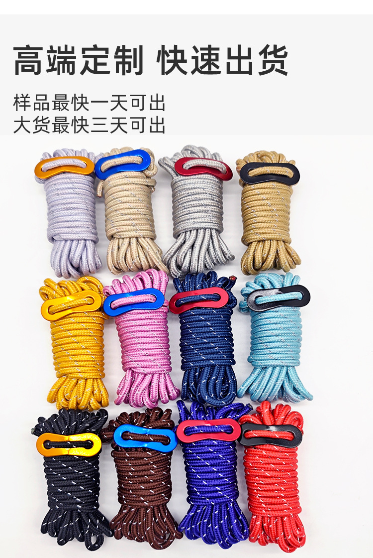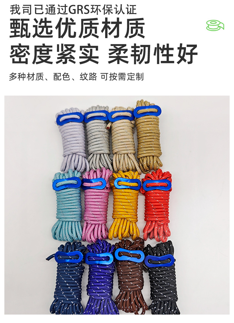 애완동물 목줄 판매, 두꺼운 야외 구조 안전줄 6-10mm 점프 포인트 반사 애완동물 목줄