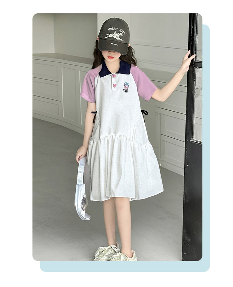 소녀 바느질 반팔 원피스 2025 여름 새 도착 한국 스타일 캐주얼 패셔너블 폴로 스커트스토어 가기