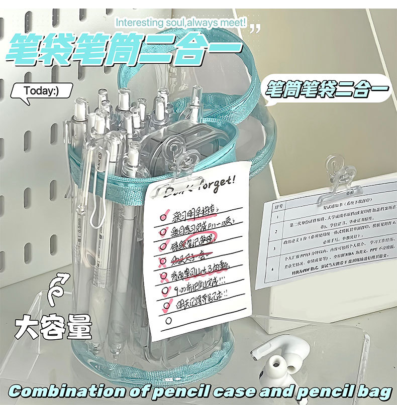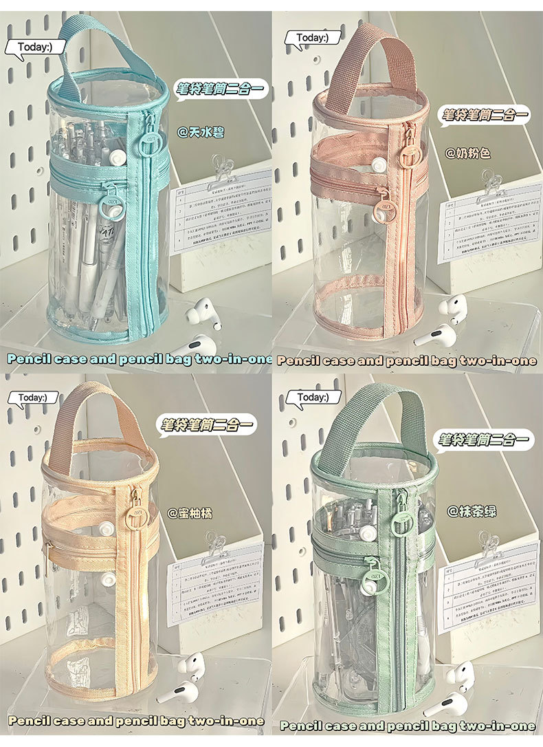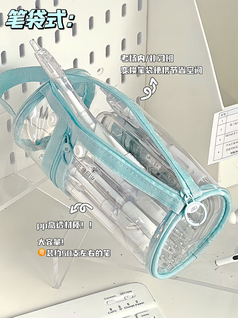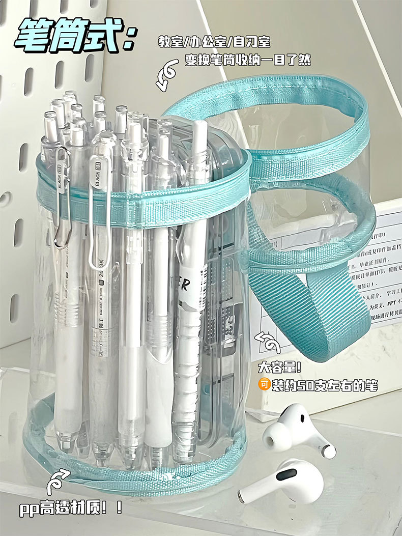 Ins 카트리지 연필 가방 대용량 저장 실린더 펜 컨테이너 학생 높은 색상 투명 방수 두꺼운 문구 가방스토어 가기
