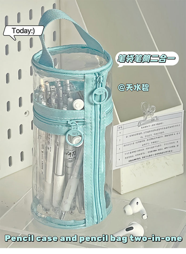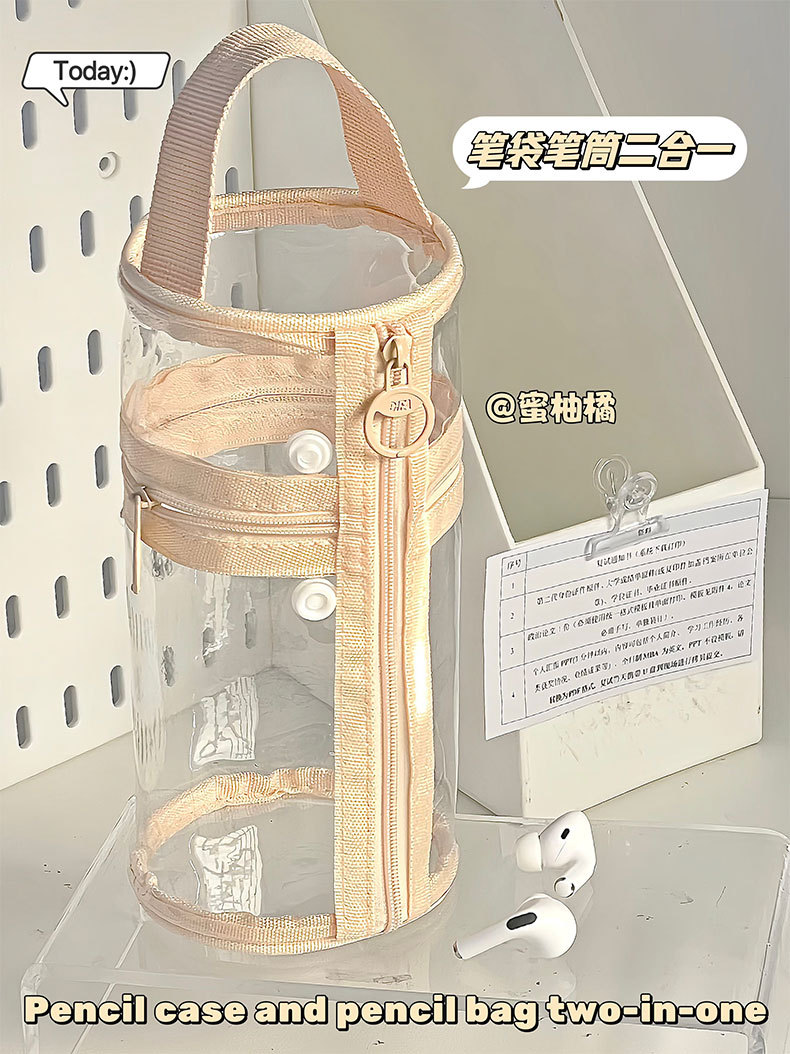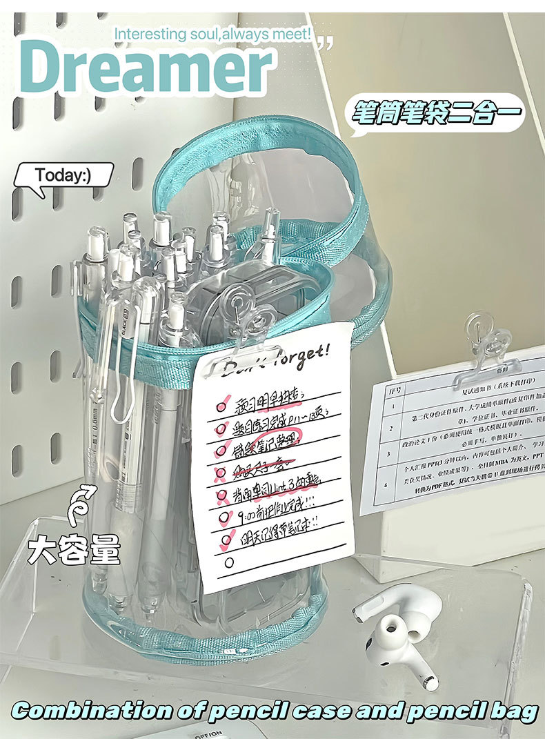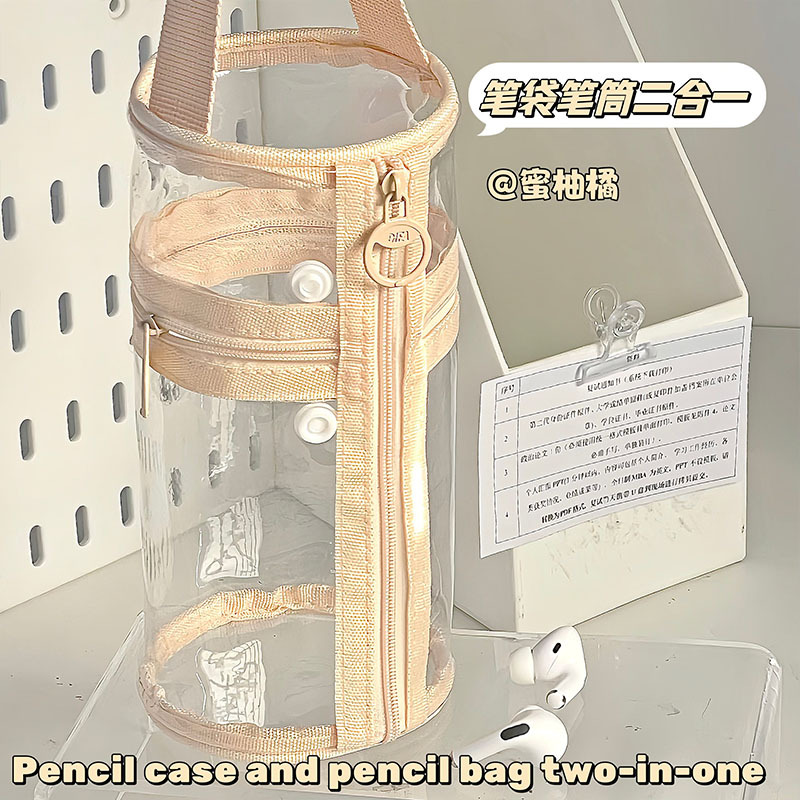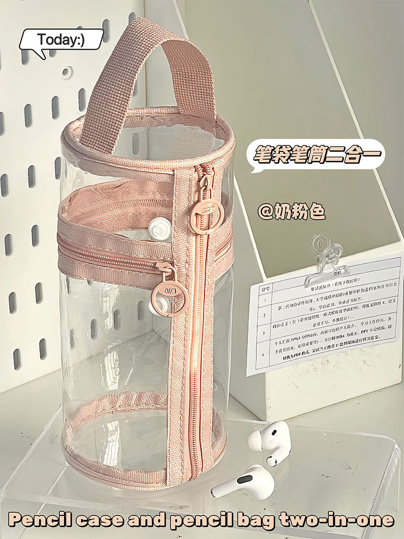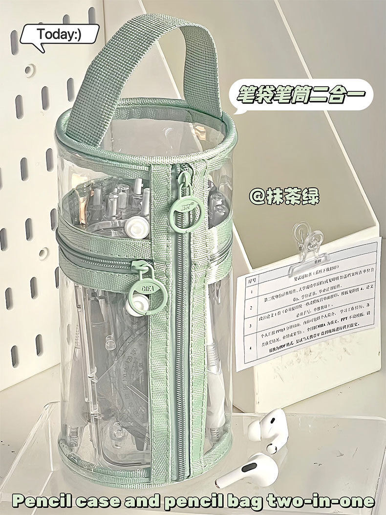 Ins 카트리지 연필 가방 대용량 저장 실린더 펜 컨테이너 학생 높은 색상 투명 방수 두꺼운 문구 가방
