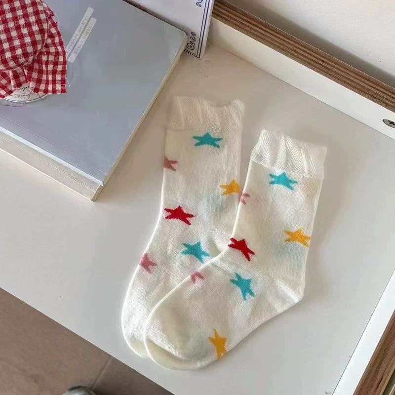 다채로운 별 얇은 중간 양말 달 5 개 별 개 소녀 귀여운 통기성 여성 양말 여름스토어 가기