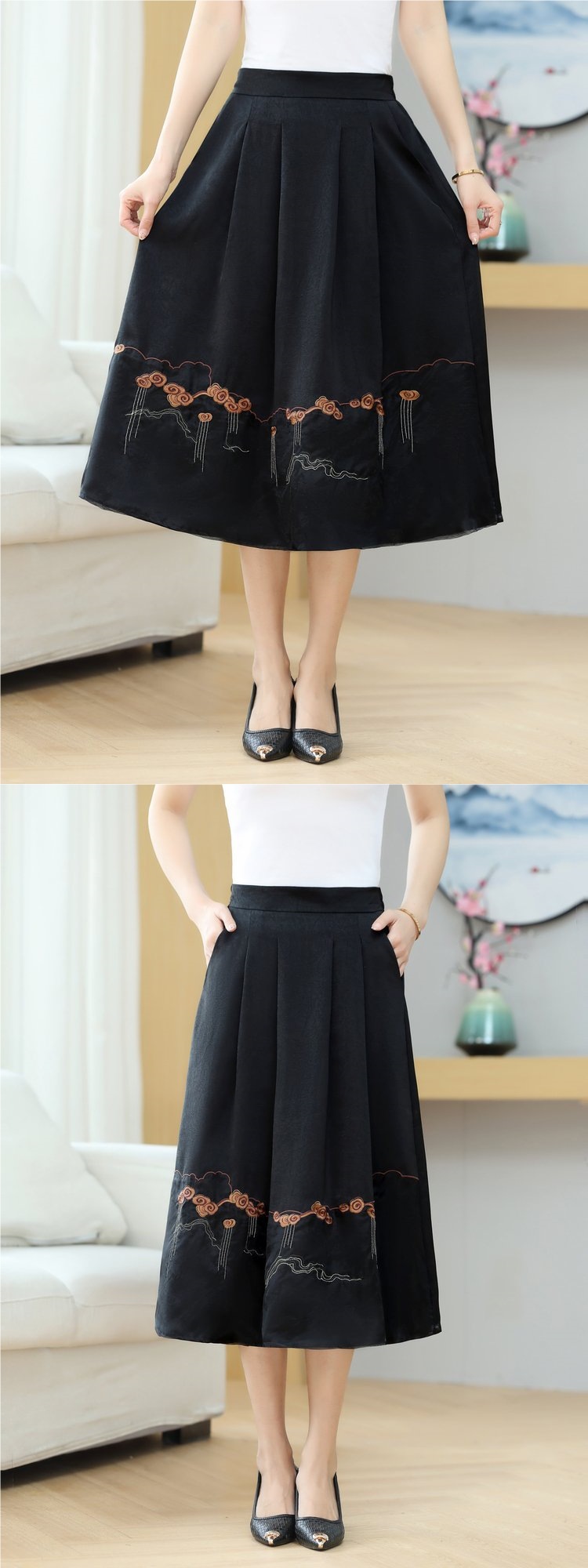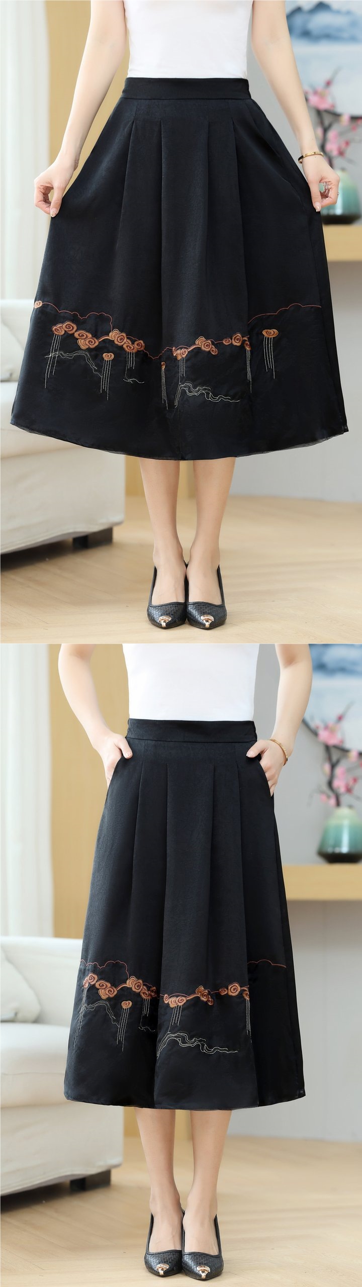 새로운 중국 스타일 엄마 민족 스타일 스커트 여름 새로운 중년 당나라 정장 말 얼굴 스커트 복고풍 고급 기질 스커트